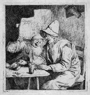 Das trunkene Bauernpaar. Radierung. 13 x 10,8 cm. 1685. Hollstein 7.
