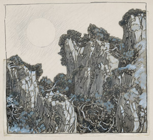 "Stille" - Mythische Landschaft mit Frau an einem Fluss