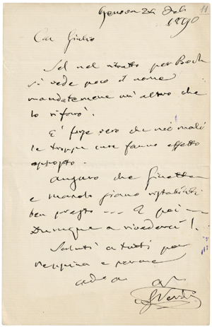 Lot 2793, Auction  116, Verdi, Giuseppe, Brief 1890