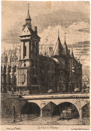 La Tour de l'Horloge. Radierung auf feinem Japan (?). 26,1 x 18,6 cm. (1852). Delteil 28 VI (von VIII), Schneiderman 23 VI (von X).