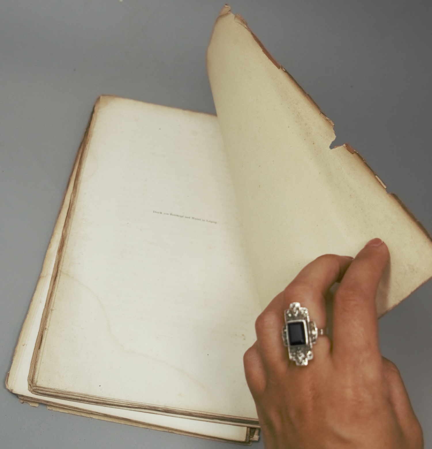WNB 25. – Erster Druck der erweiterten Fassung. Nach Abschluss des Zarathustra konnte sich Nietzsche der Neuausgabe und Überarbeitung bereits erschienener Werke widmen. So veranstaltete er mit seinem wiedergewonnenen Verleger Fritzsch unter Verwendung noch vorhandener Restbogen sogenannte Titelauflagen. Bei Die fröhliche Wissenschaft und Die Geburt der Tragödie wurden jedoch nicht nur die Titelblätter erneuert, Nietzsche verfasste zudem bedeutende Vorreden, die hier erstmals im Druck erschienen. Seine wirkungsmächtige Basler Frühschrift über das Dionysische und das Apoollinische erschien zuerst im Mai 1872. "Unter dem Zauber des Dionysischen schließt sich nicht nur der Bund zwischen Mensch und Mensch wieder zusammen: auch die entfremdete, feindliche oder unterjochte Natur feiert wieder ihr Versöhnungsfest mit ihrem verlorenen Sohne, dem Menschen." Nietzsches Schrift über Entstehung und Niedergang der griechischen Tragödie wurde von der etablierten Philologie aufgrund seiner intuitiven und irrationalen Schlüsse nicht ernst genommen und weitgehend ignoriert. Lediglich der junge Wilamowitz-Möllendorff, mit dem Nietzsche gemeinsam in Schulpforta die Schulbank drückte, wagte einen öffentlichen Tadel: "herr Nietzsche tritt ja nicht als wissenschaftlicher forscher auf: auf dem wege der intuition erlangte weisheit wird teils im kanzelstil, teils in einem raisonnement dargeboten, welches dem journalisten nur zu verwandt ist." Erwin Rohde sprang seinem Freund Nietzsche zur Seite und veröffentlichte seine Erwiderungsschrift Afterphilologie, in der er Nietzsches Thesen verteidigt und gegen Wilamowitz polemisiert. – Lagen zumeist lose. Unaufgeschnittenes und unbeschnittenes Exemplar mit Feuchtigkeitsrändern. Innenspiegel mit großem Jugendstil-Exlibris des Philologen und Wasserzeichenforschers Karl Theodor Weiß (1872-1945).