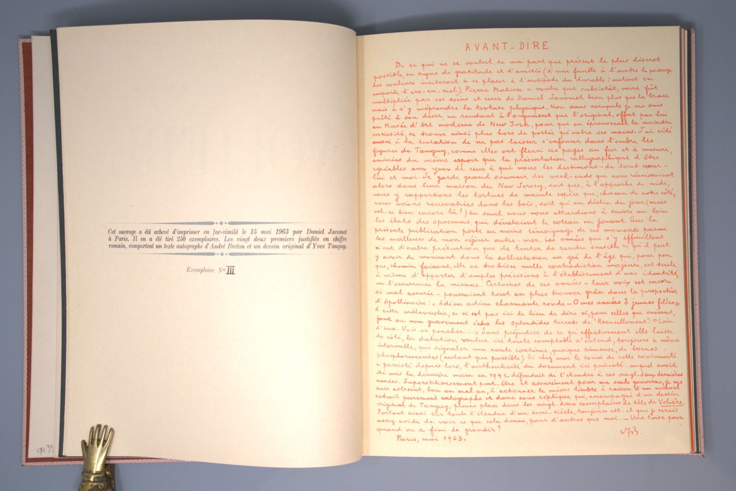 Mit Manuskript von André Breton und Zeichnungen von Yves Tanguy - im Meistereinband von Leroux