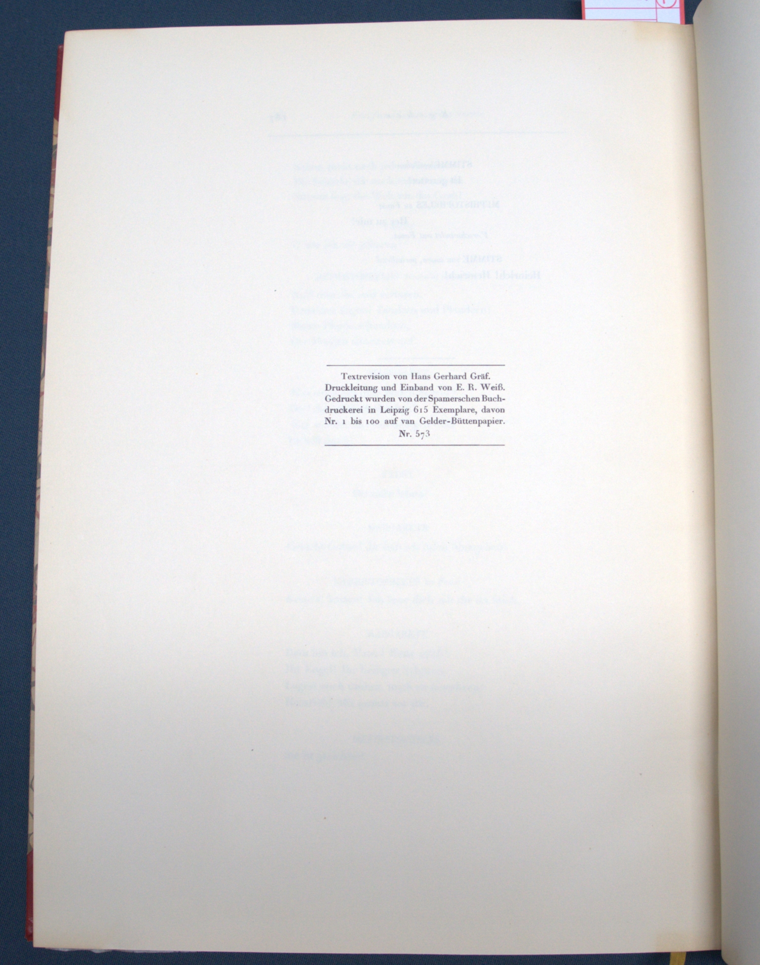 Sarkowski 581. – Eines von 415 nummerierten Exemplaren auf Maschinenbütten in Halbleder (Gesamtauflage: 615). – Frisches Exemplar.