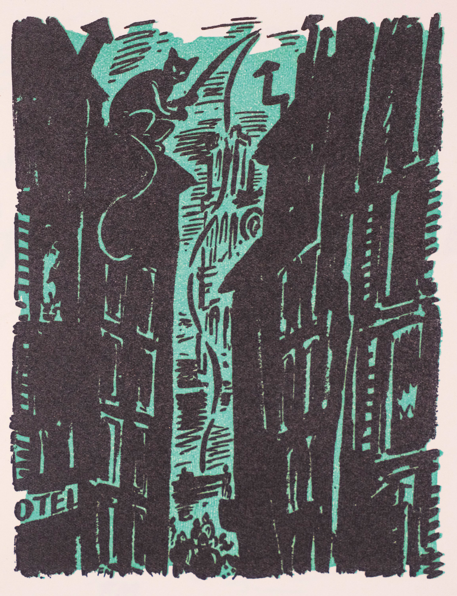 Masereel, Frans. - Földes, Jolán. La rue du chat-qui-pêche. Version française de Denise van Moppés. Illustrations et présentation de Frans Masereel. 349 S. Mit 36 teils ganzs. Orig.-Holzschnitten von Frans Masereel. 29,5 x 21,5 cm. Lose Bogen in OUmschlag und OPapp-Decke mit schwarzgeprägtem RTitel. Gand (Gent), Snoeck-Ducaju & Fils, 1947.
