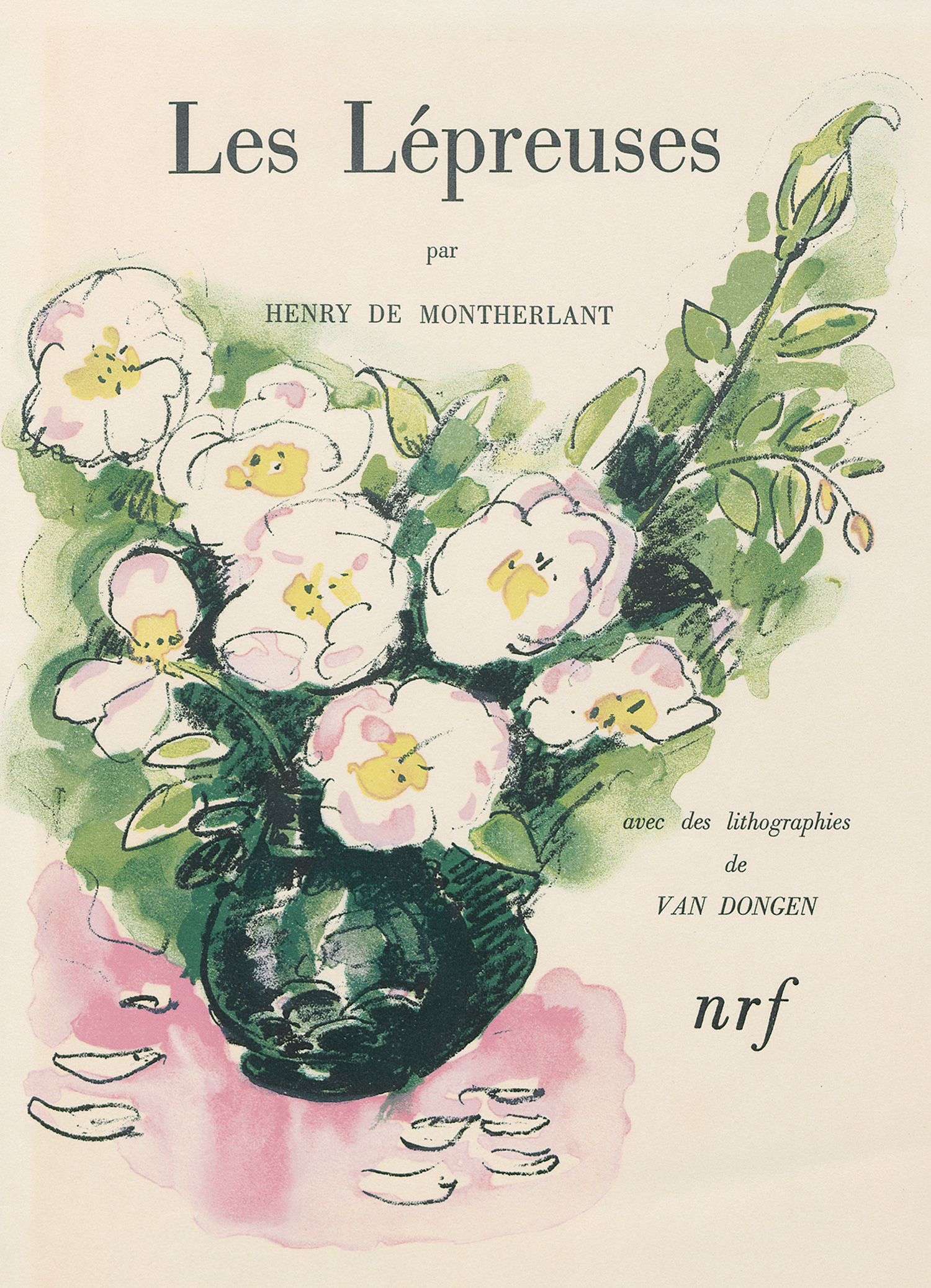 Montherlant, Henry de. Les Lépreuses. 260 S., 2 Bl. Mit 25 Original-Farblithographien im Text von Kees van Dongen. 33,5 x 25,5 cm. Lose Lagen in illustr. OUmschlag, OPappdecke und OPappschuber. Paris, Gallimard, 1947.