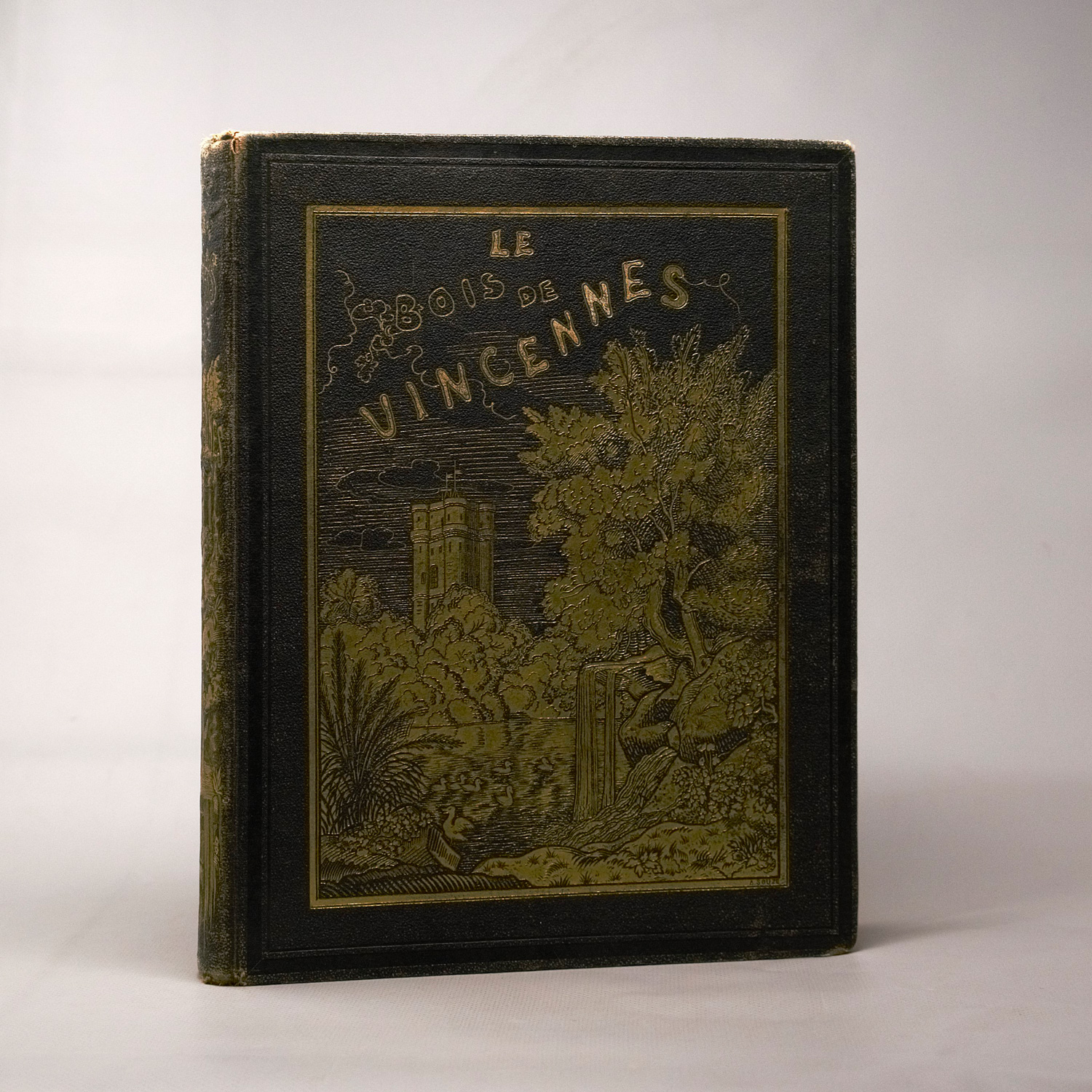 Rousset, Ildefonse. - La Bédolliére, Emile de. Le Bois de Vincennes, décrit et photographié. 2 Bl., 71 S., 2 Bl. Mit 25 (22 ganzseitigen auf Tafel) montierten Original-Fotografien und Plan. Illustriertes OLeinen (berieben und bestoßen) mit reicher Goldprägung auf dem Rücken und den Deckeln sowie Goldschnitt. Paris, Lacroix, Verboeckhoven und Cie, 1866.