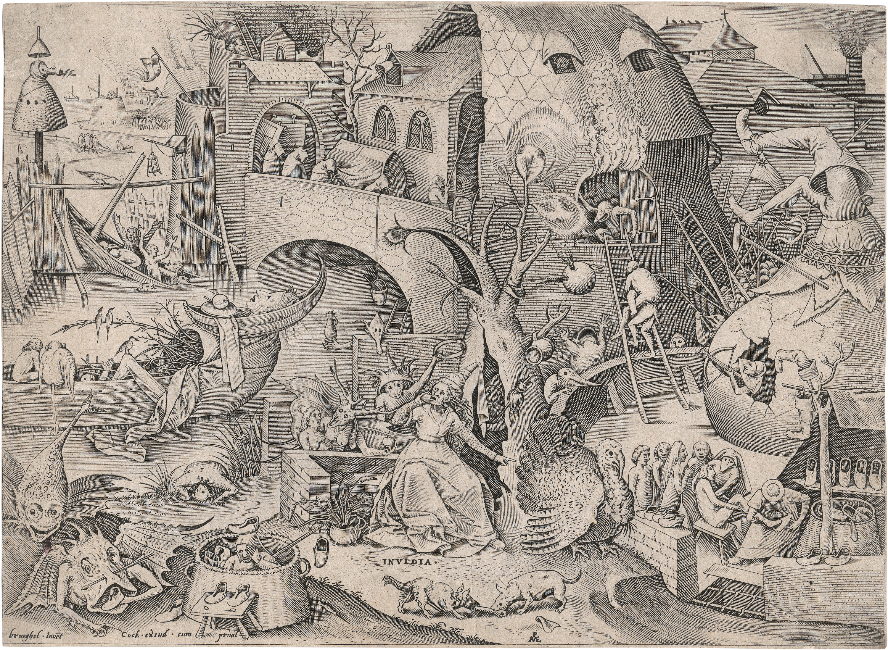 nach. Invidia. Kupferstich von Pieter van der Heyden. 21,3 x 29,3 cm. (1558). Hollstein (Bruegel) 130, Hollstein (Cock) 241, Bastelaer 130, Riggs 39, Orenstein (New Hollstein) 26 I (von II), Bassens/Grieken 11 g I (von II). Wz. Gotisches P.