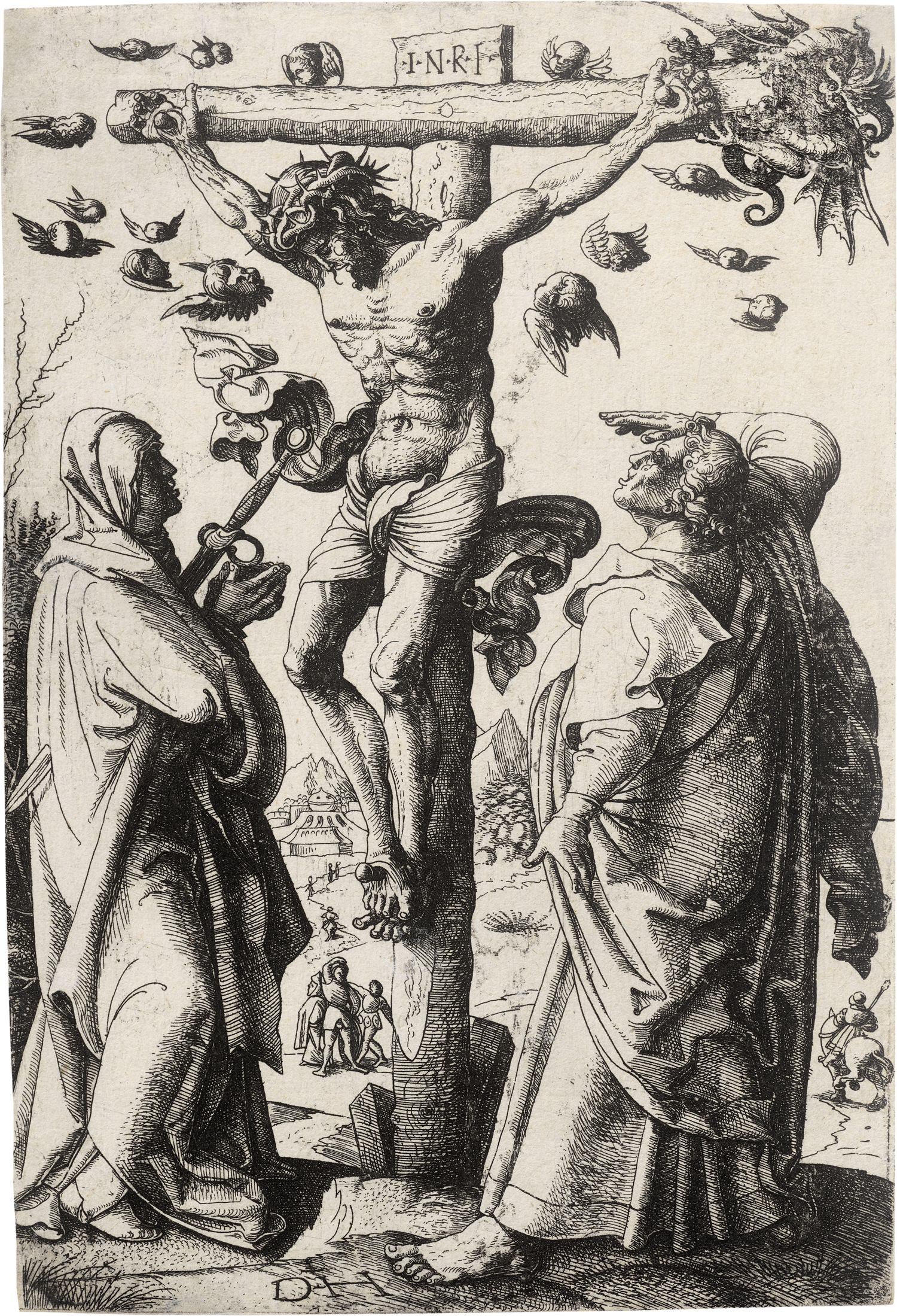 Kreuzigung Christi mit Maria und Johannes. Eisenradierung. 22,1 x 14,9 cm. B. 12, Hollstein 17, Metzger 19 wohl II (von III). Wz. Bekrönter Doppelkopfadler.