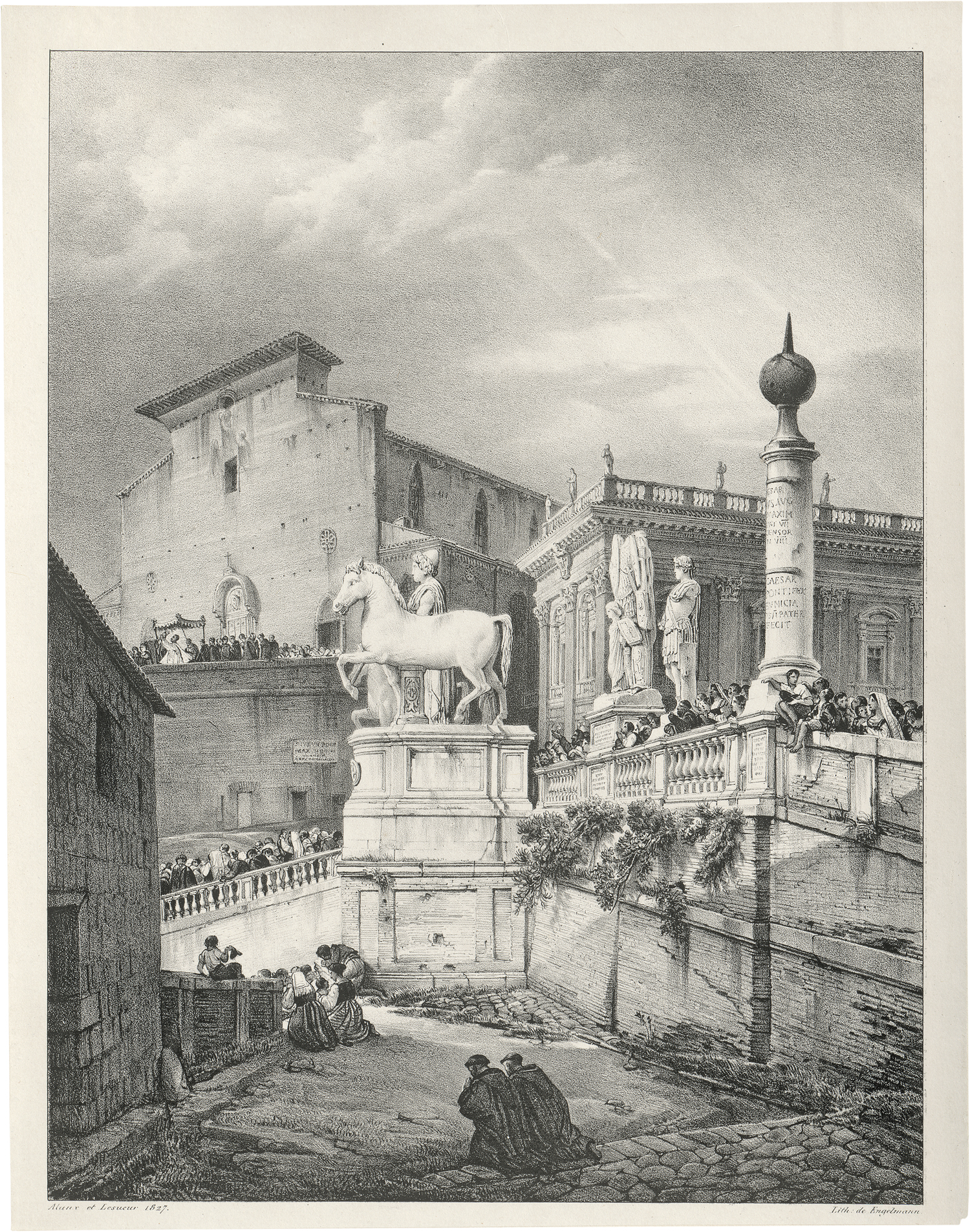 Vue de Capitole (Ansicht des Kapitols in Rom). Lithographie auf gewalztem China. 33,3 x 25,2 cm. 1827. Nicht bei Winkler.