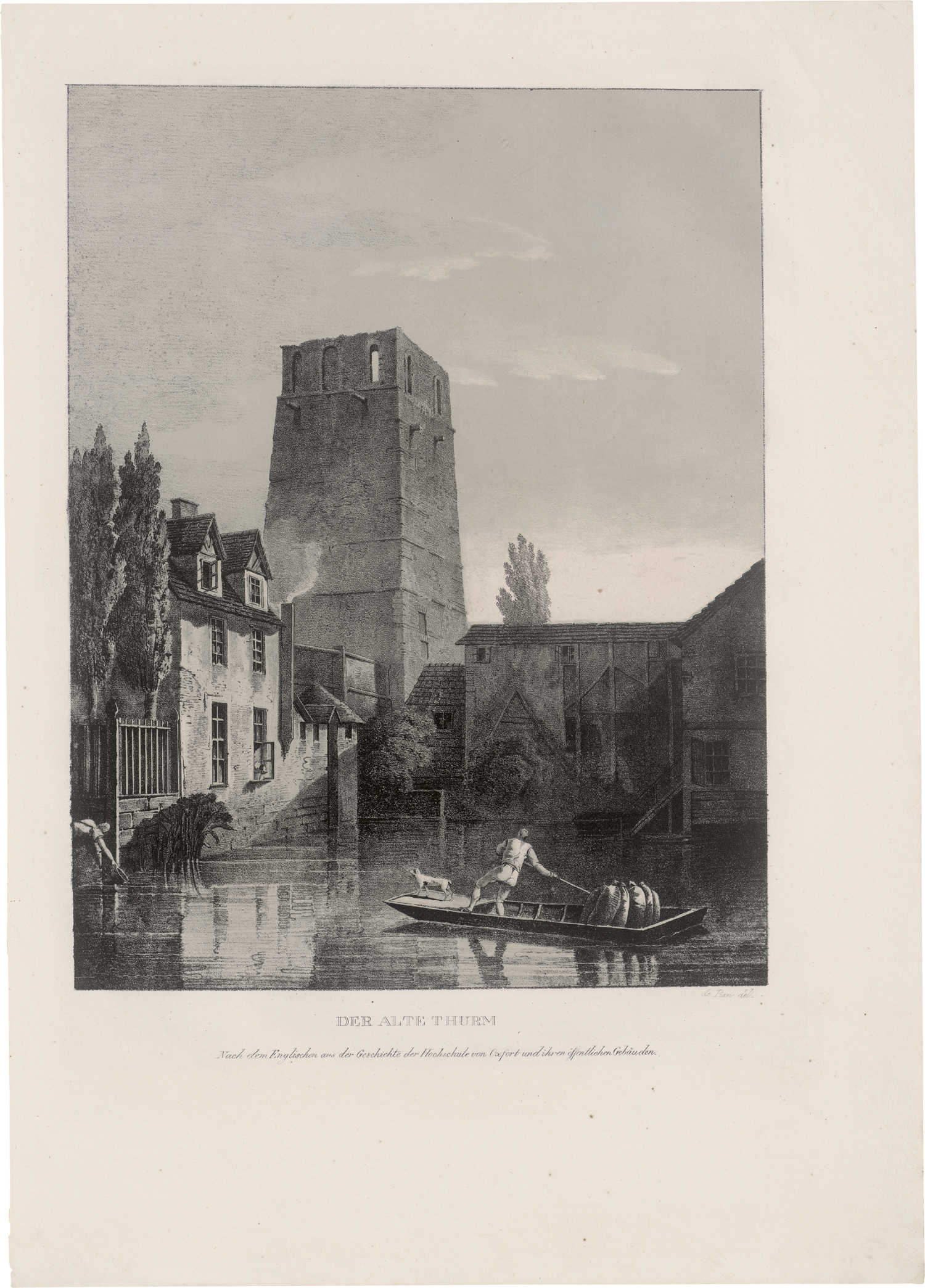 Der alte Turm. Lithographien mit grüngrauer Tonplatte. 40,7 x 31,1 cm. (1820). Schwarz: Die Anfänge der Lithographie in Österreich, 155, 1 I (von II).