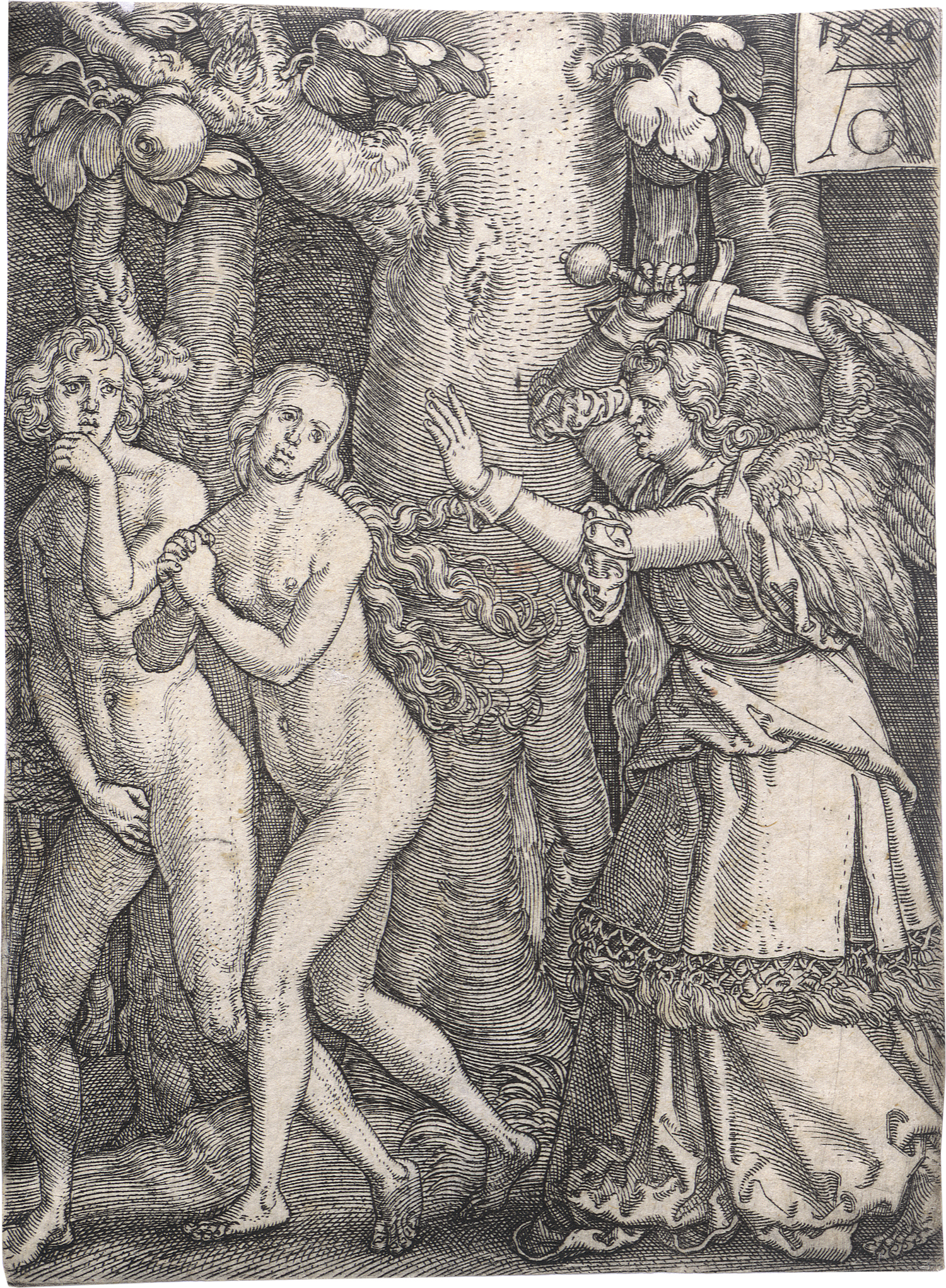 Die Vertreibung aus dem Paradies. Kupferstich. 8,7 x 6,4 cm. 1540. B. 5, Hollstein 5, Mielke (New Hollstein) 5.