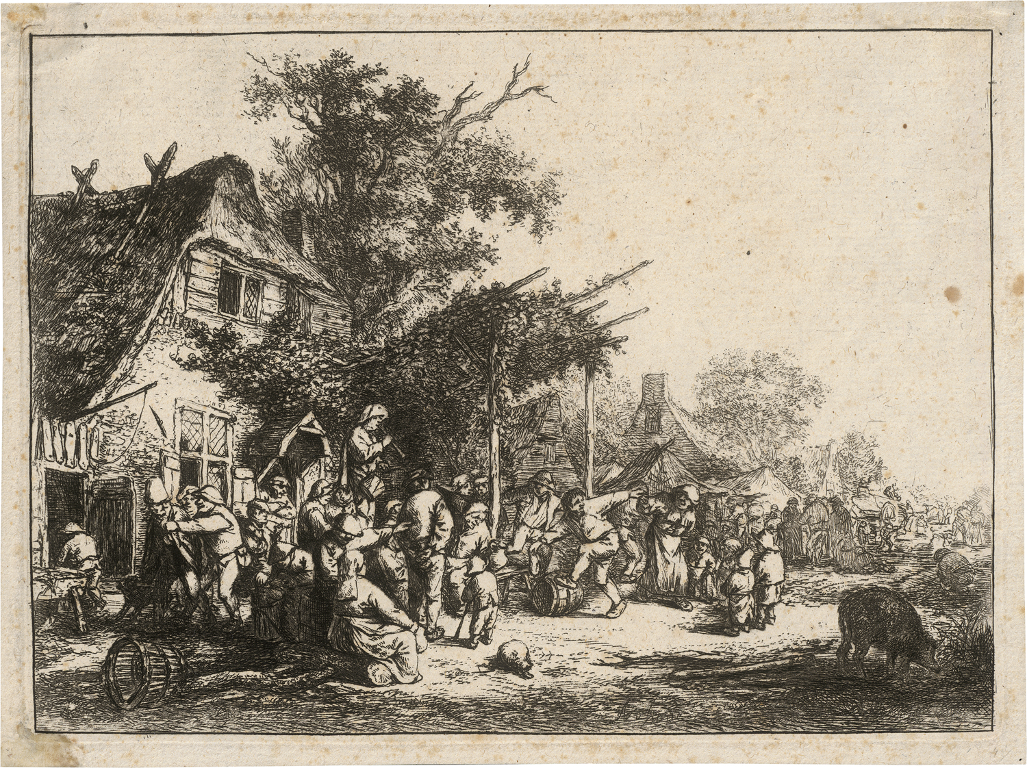 Der Tanz unter der Laube. Radierung. 12,7 x 17,5 cm. Um 1652. B. 47, Dutuit VI, Davidsohn VI, Godefroy VII, Hollstein 47 VII, Giordani/Rutgers (New Hollstein) 28 VI.