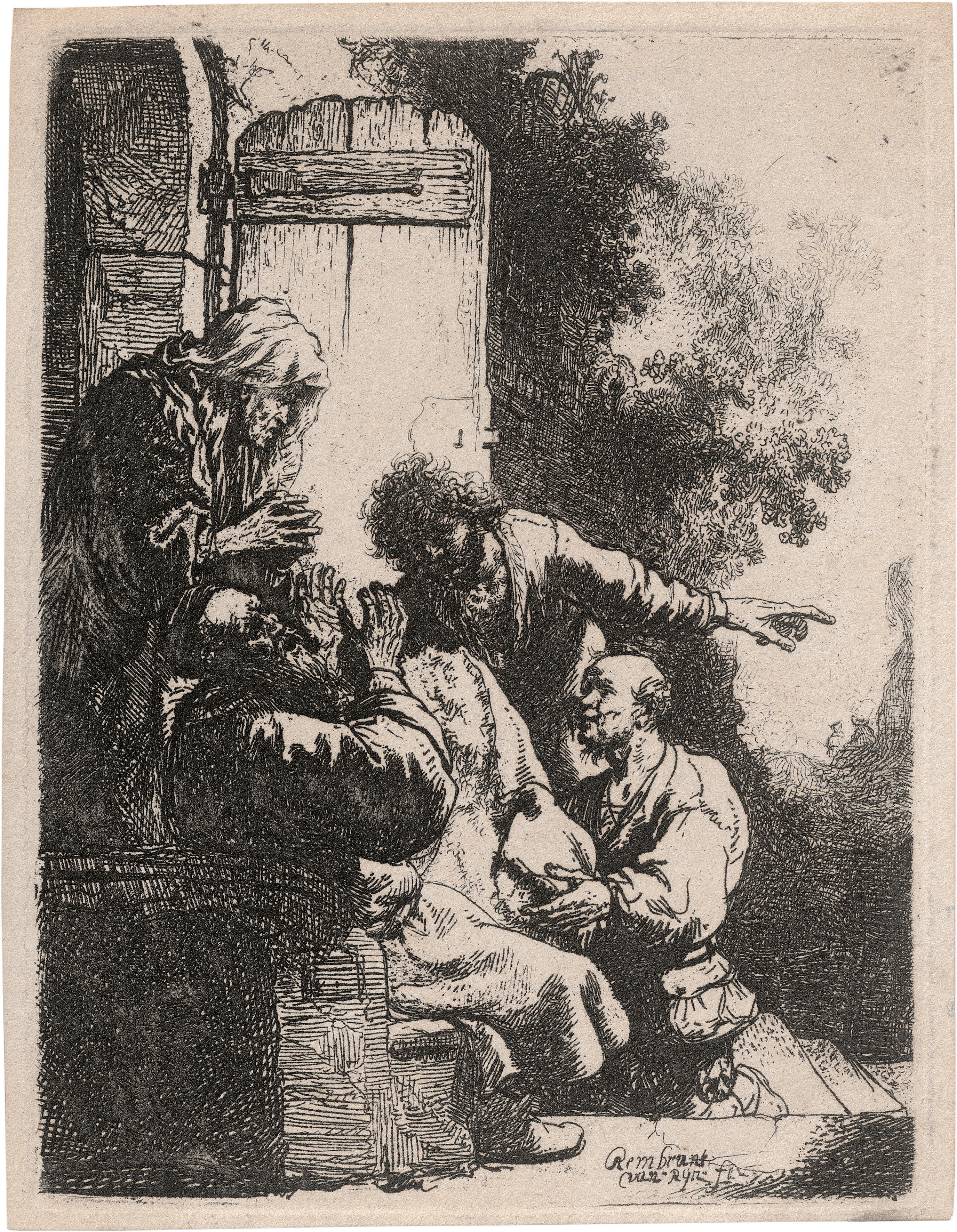 Jakob den Tod Josephs beklagend. Radierung. 10,6 x 8,1 cm. 1633. B. 38, White/Boon (Hollstein) 38 II, Hinterding/Rutgers (New Hollstein) 122 II.