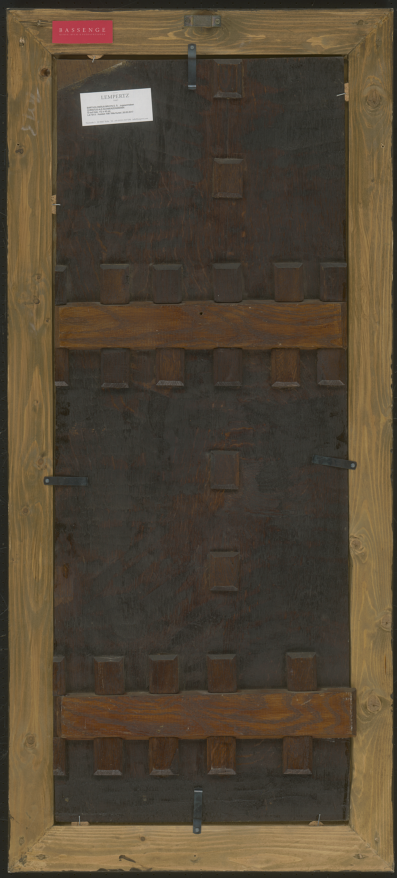 Öl auf Holz, teils parkettiert. 112 x 43 cm.