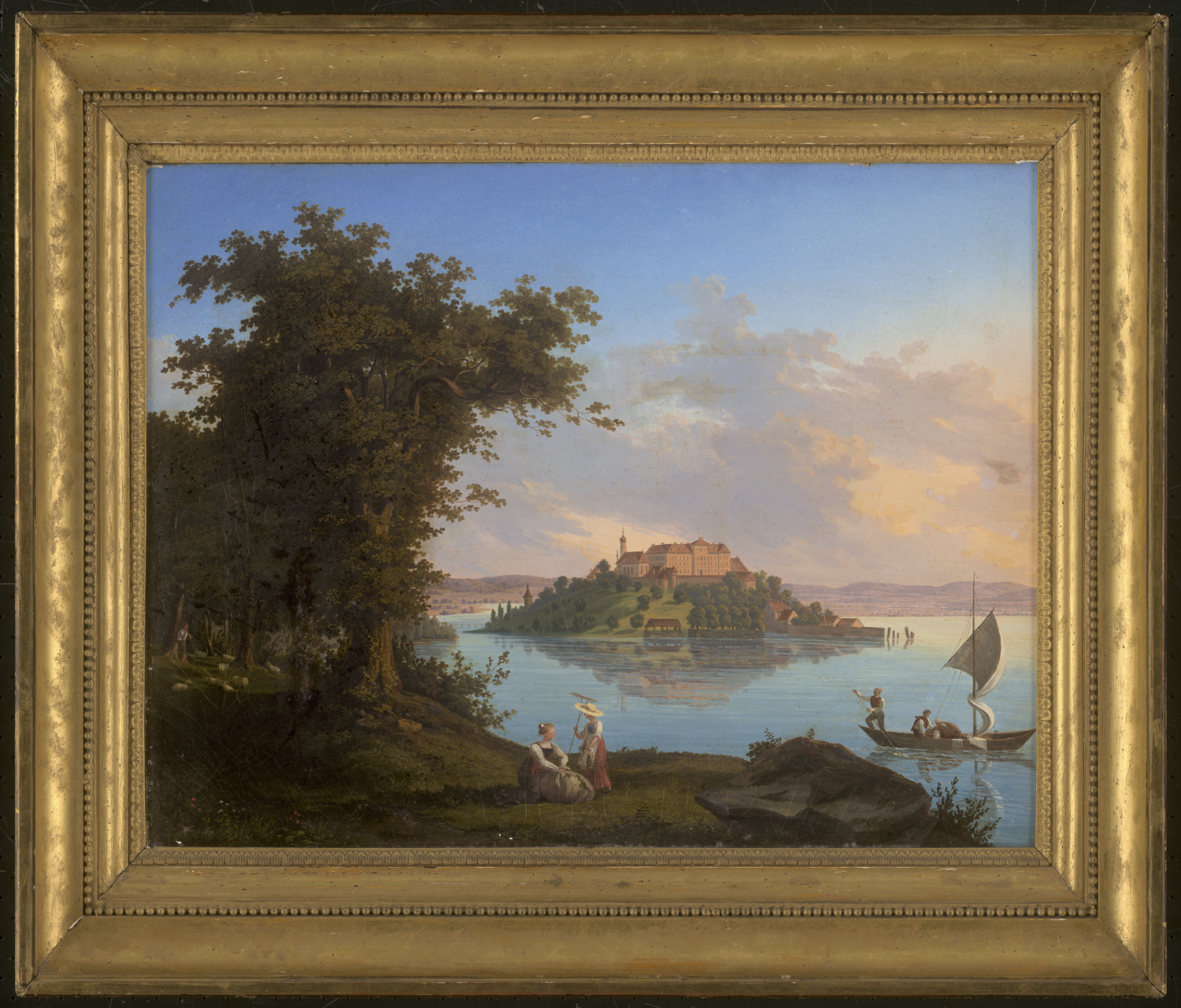 (aktiv zwischen 1820-1846)Blick vom Ufer des Bodensees auf die Insel Mainau und das Schloss