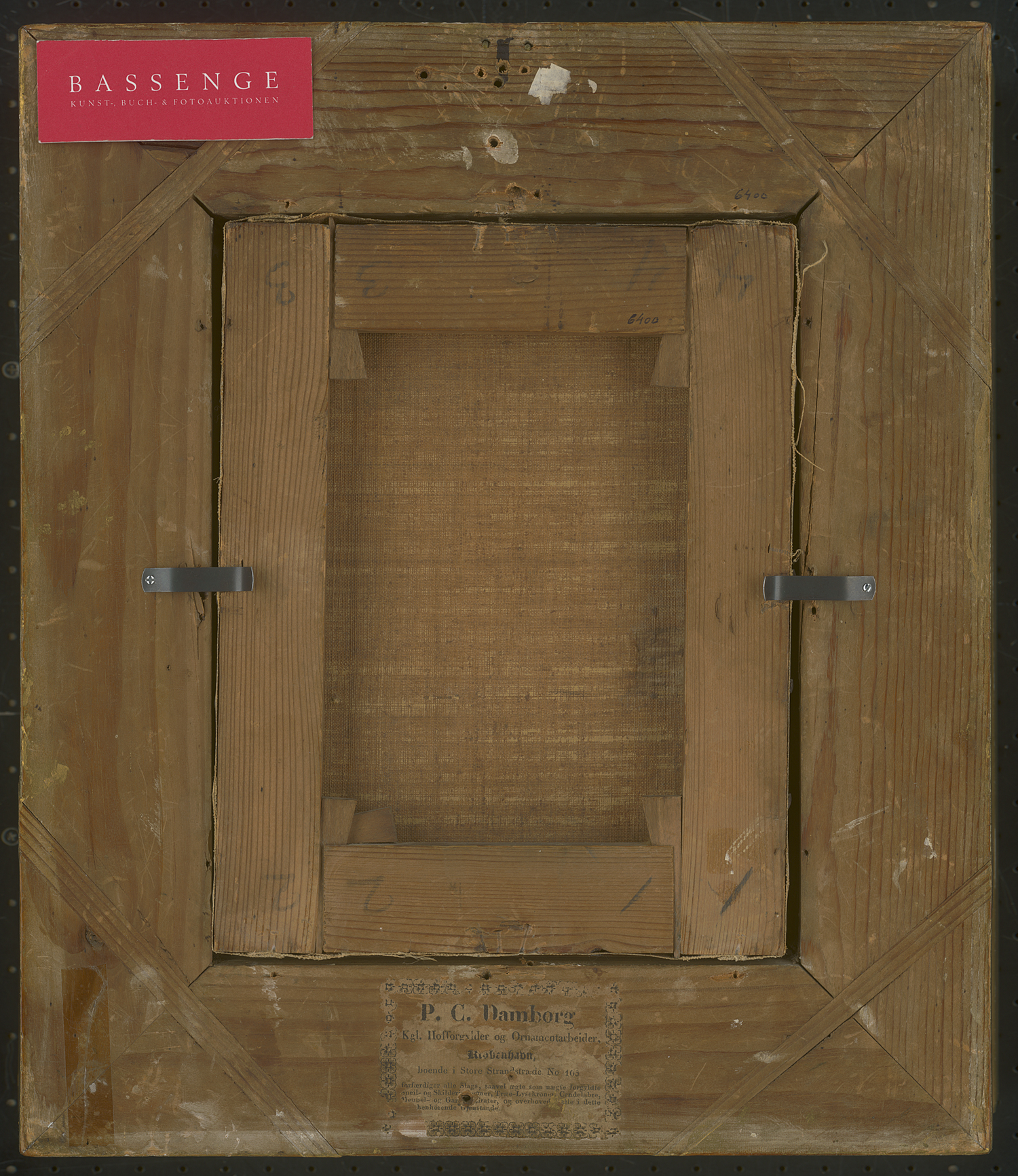 Qualitativ steht das reizende Porträt den Arbeiten des dänischen Genre- und Porträtmalers Wilhelm Ferdinand Bendz (1804-1832) sehr nahe. In einem Rahmen des berühmten Kopenhagener königlichen Hofvergolders und Ornamentkünstlers Peder Christian Damborg (1801-1865), der für fast alle bedeutenden Künstler und Sammler seiner Zeit Rahmen und andere Objekte anfertigte.