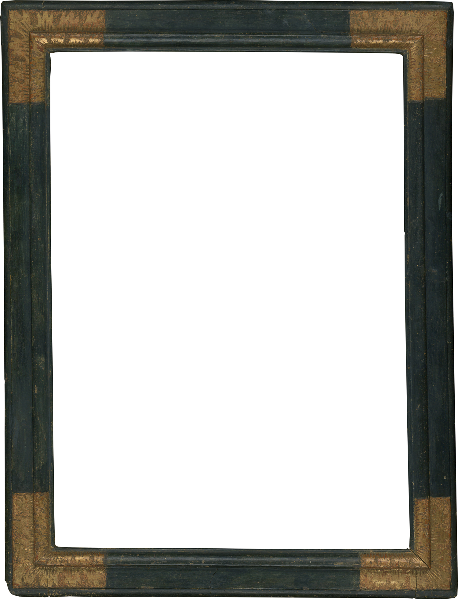 graviert, gefasst und vergoldet, Sichtleiste Wulstprofil mit verzierten Ecken, glattes Profil, abfallendes Profil als Abschluss.