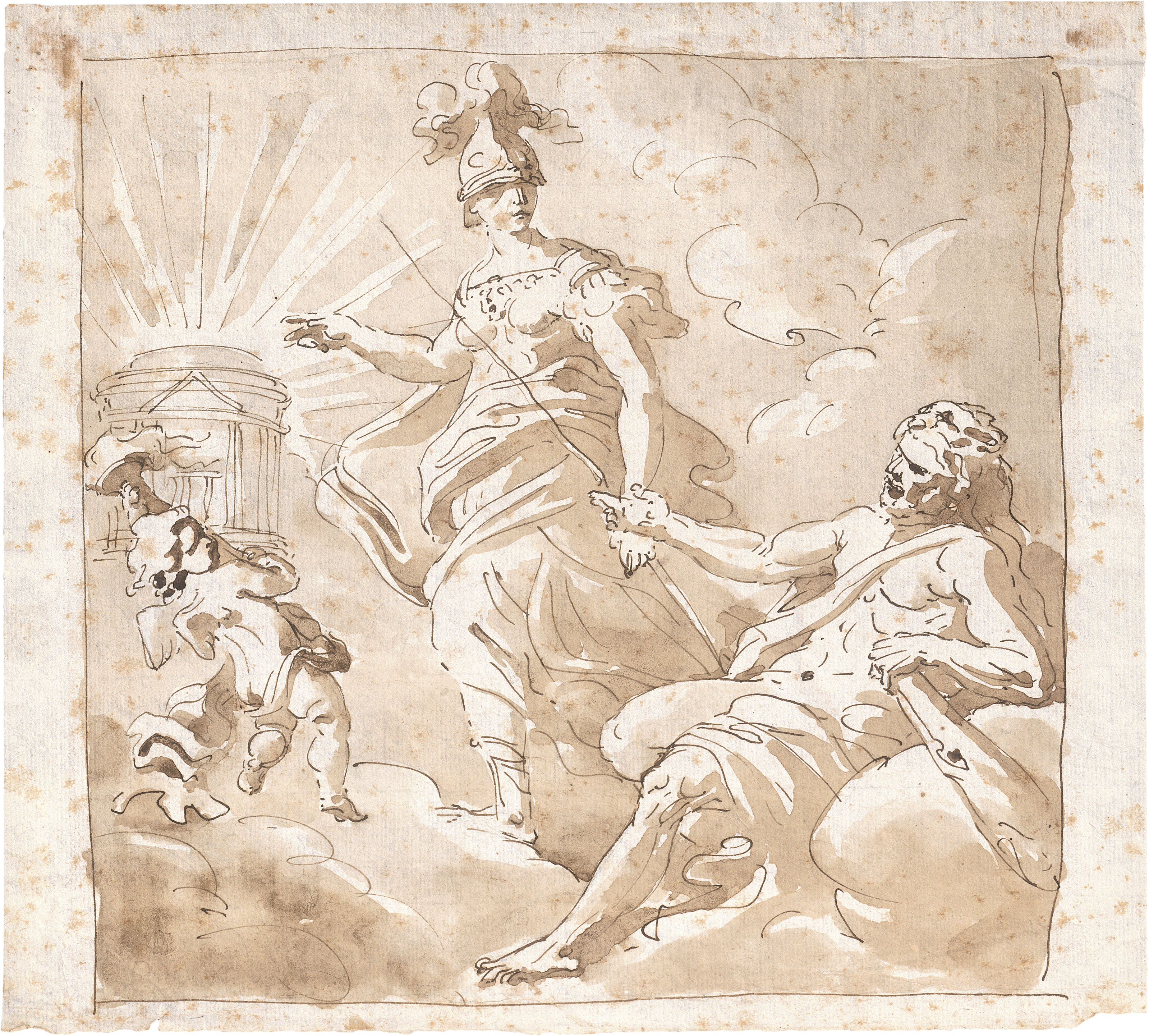 zugeschrieben. Minerva und Amor führen Herkules auf den Pfad der Tugend.