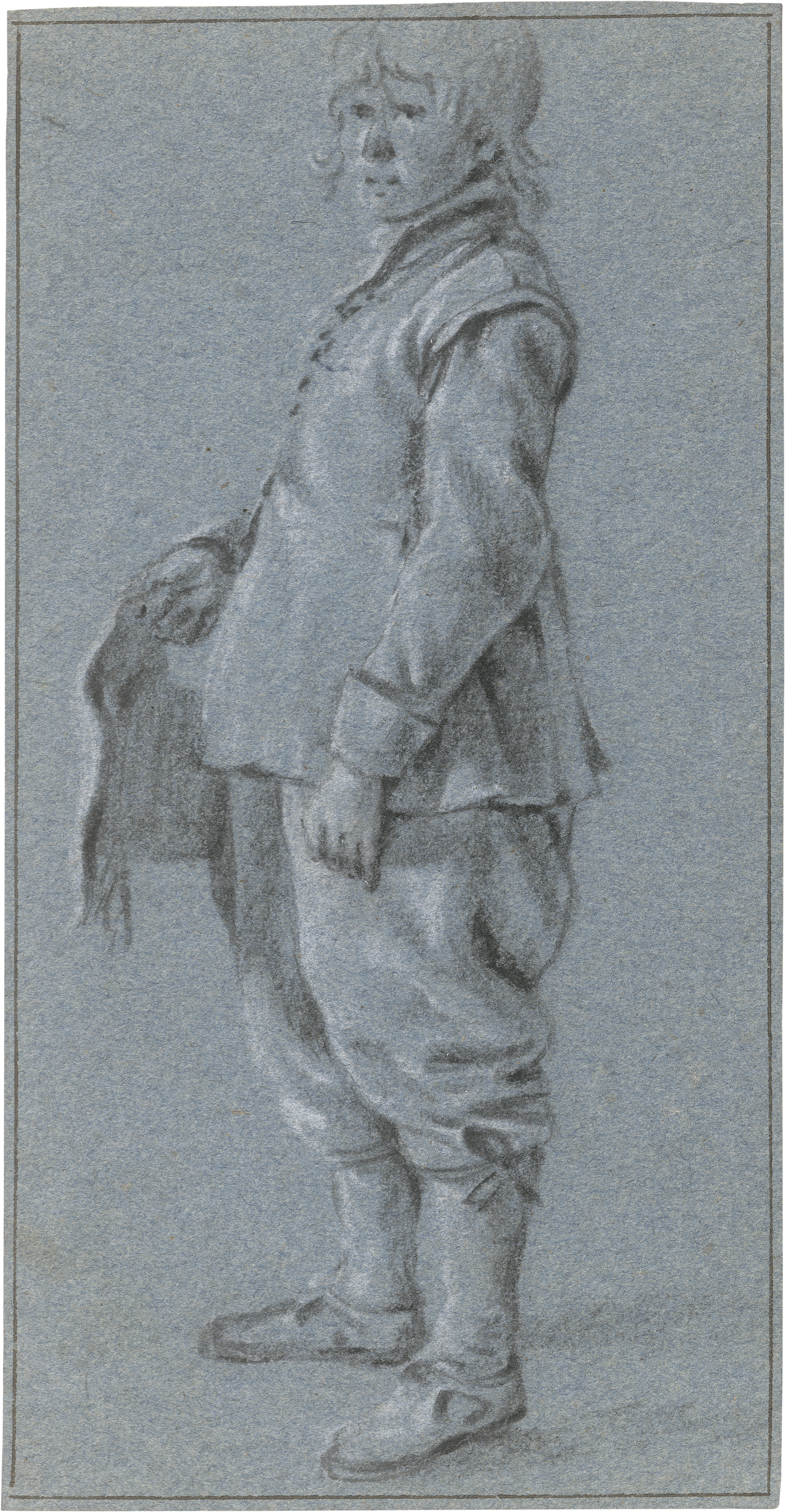17. Jh. Stehender Kavalier, einen Hut haltend
