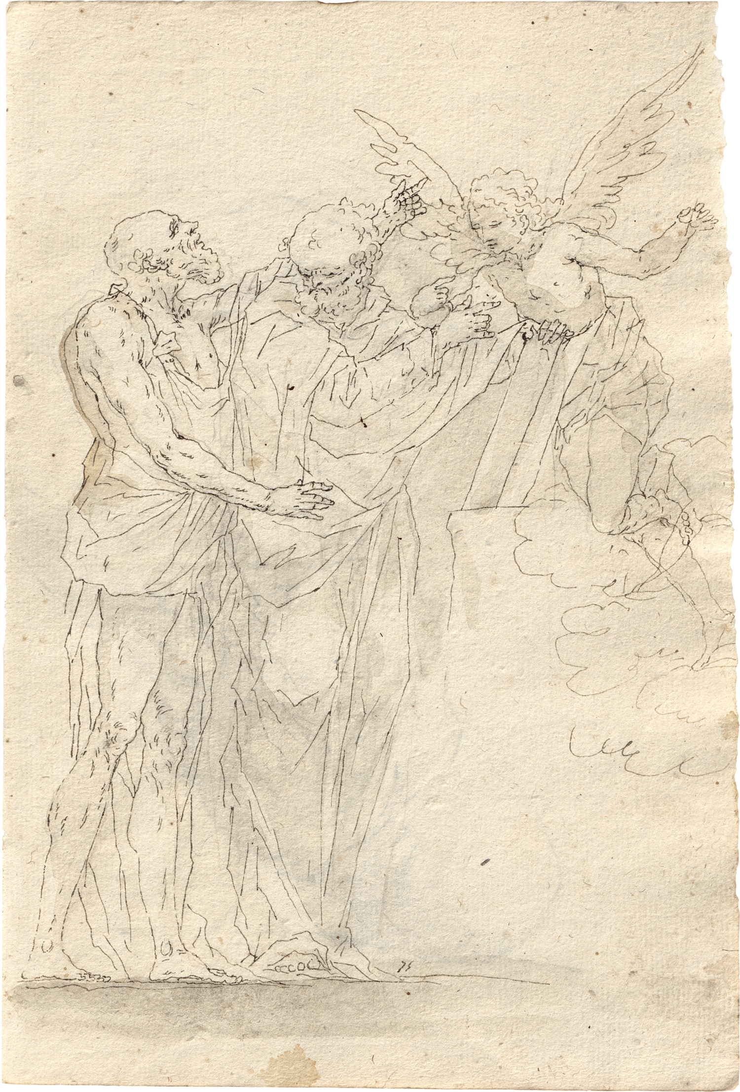 Paolo Caliari wurde 1763 in Verona als Sohn von Domenico Caliari, einem Buchhändler und Kupferstecher geboren, durch den er schon früh mit den Techniken des Gravierens vertraut wurde. Er studierte an der örtlichen Kunstakademie bei Prospero Schiavi (1730-1803), einem der Mitbegründer der Akademie und Schüler von Giambettino Cignaroli (1706-1770) und erhielt bereits kurz nach Abschluss seiner Studien im Jahr 1788 das Diplom für eine Professur. Bereits zu Beginn seiner Karriere gewann er zahlreiche akademische Auszeichnungen für sein Werk, war an mehreren Aufträgen zur Dekoration von Palästen und Häusern seiner Stadt beteiligt, schuf vereinzelt Porträts sowie zahlreiche Altargemälde und Andachtsbilder. Daneben widmete er sich dem Experimentieren mit verschiedenen künstlerischen Techniken und dem Studium und Kopieren von Gemälden alter Meister. Die Blätter gehören zu einem Albums, dessen Titel die eigenh. Bezeichnung "Schizzi a Primi colpi di Penna in otto Giorni 1818", woraus auch für diese Zeichnungen die Entstehung im Jahr 1818 folgt (s. Bassenge, Auktion 125 im Mai 2025, Los 6769).