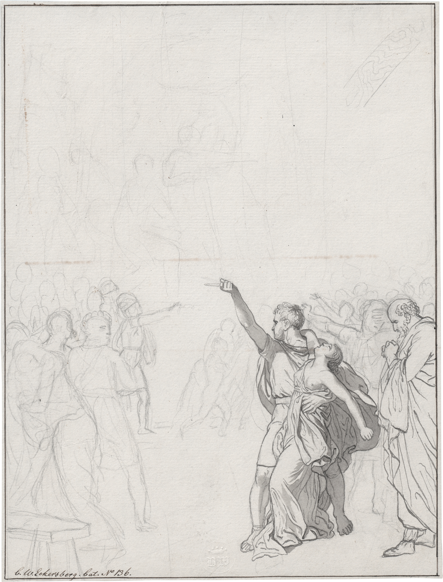 Eine ausgearbeitete, signierte Zeichnung des gleichen Motivs befand sich ebenfalls in der Sammlung Wolff. Sie ist auf das Jahr 1804 datiert. Zwischen 1803 und 1810 studierte Eckersberg an der Königlichen Akademie der Schönen Künste in Kopenhagen. Seine erste größere figürliche Komposition, die er im Jahr 1804 an der Akademie ausführte, thematisiert ebenfalls den Tod der Virginia. Es liegt daher nahe, auch unsere Zeichnung in diesen frühen Schaffenszeitraum Eckersbergs zu datieren.