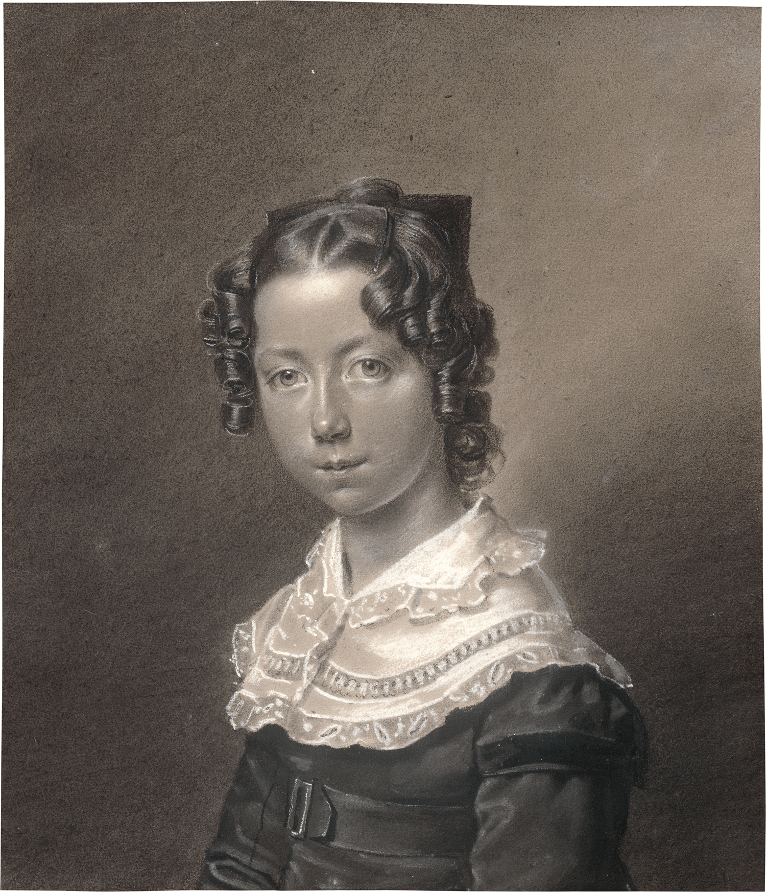 (1797 Großbadegast - 1857 Berlin)Bildnis eines Mädchens mit Haarschleife und weißem Kragen