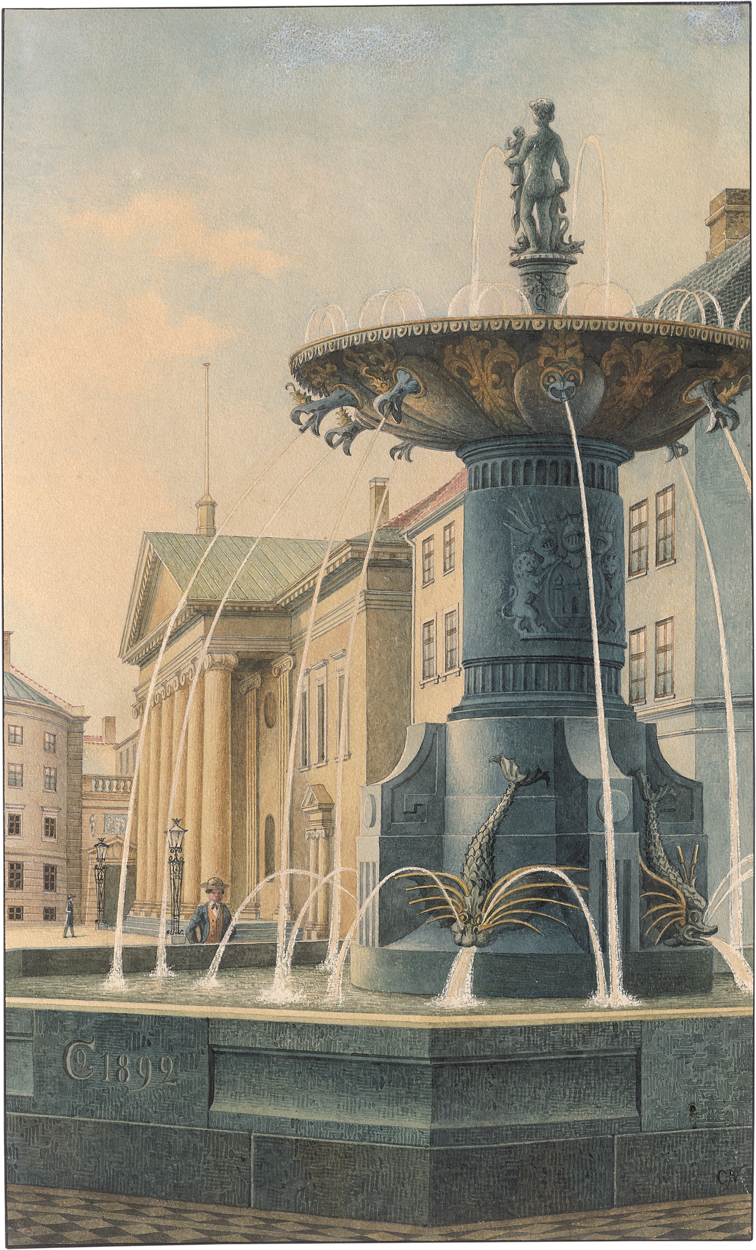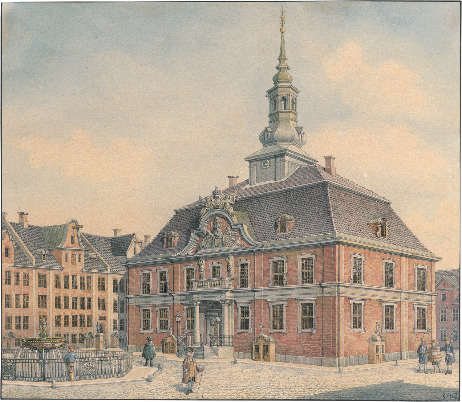 Die verschiedenen Ansichten zeigen historische Bauwerke in Kopenhagen, vermutlich vornehmlich verschiedene Rathäuser der Stadt im Wandel der Zeit. Signifikant hält sich der typische Klinkerbau-Stil; die beiden Schlussblätter zeigen das moderene Rathaus und den Caritasbrunnen auf dem Gammeltorv, so wie es bis heute das Stadtbild prägt.