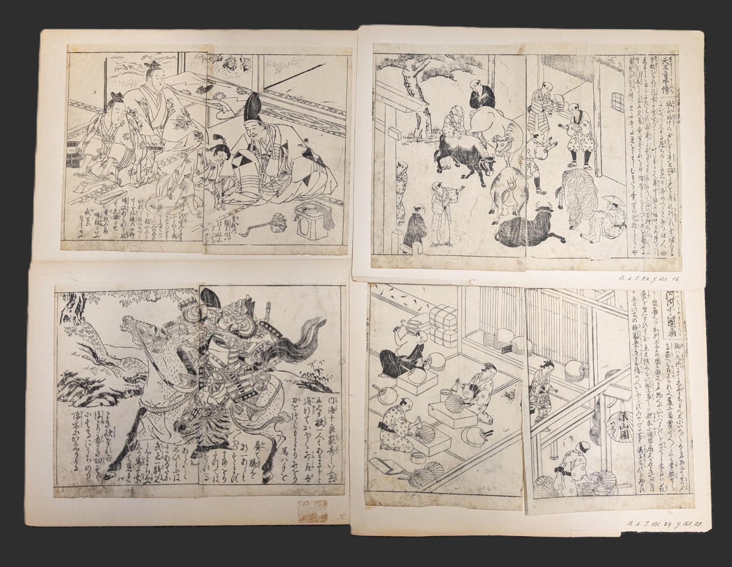 (1671-1750; 1739-1820)32 Holzschnitte mit figürlichen Darstellungen aus einer Heldensaga sowie Szenen des Alltagslebens verschiedener Berufsgruppen