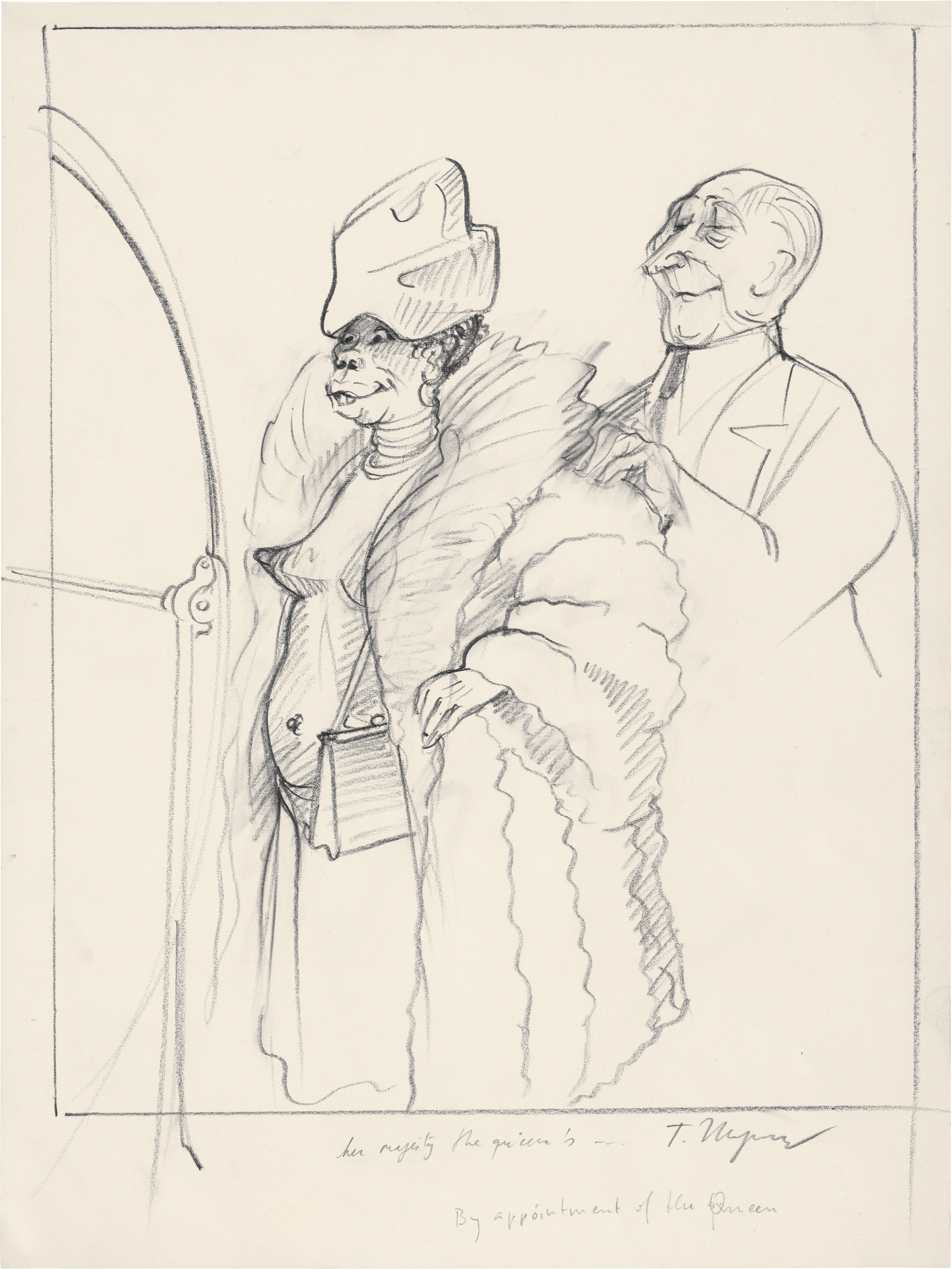 Unten rechts mit Bleistift signiert "T. Ungerer", unten mittig betitelt sowie bezeichnet "Her majesty the queen's...".