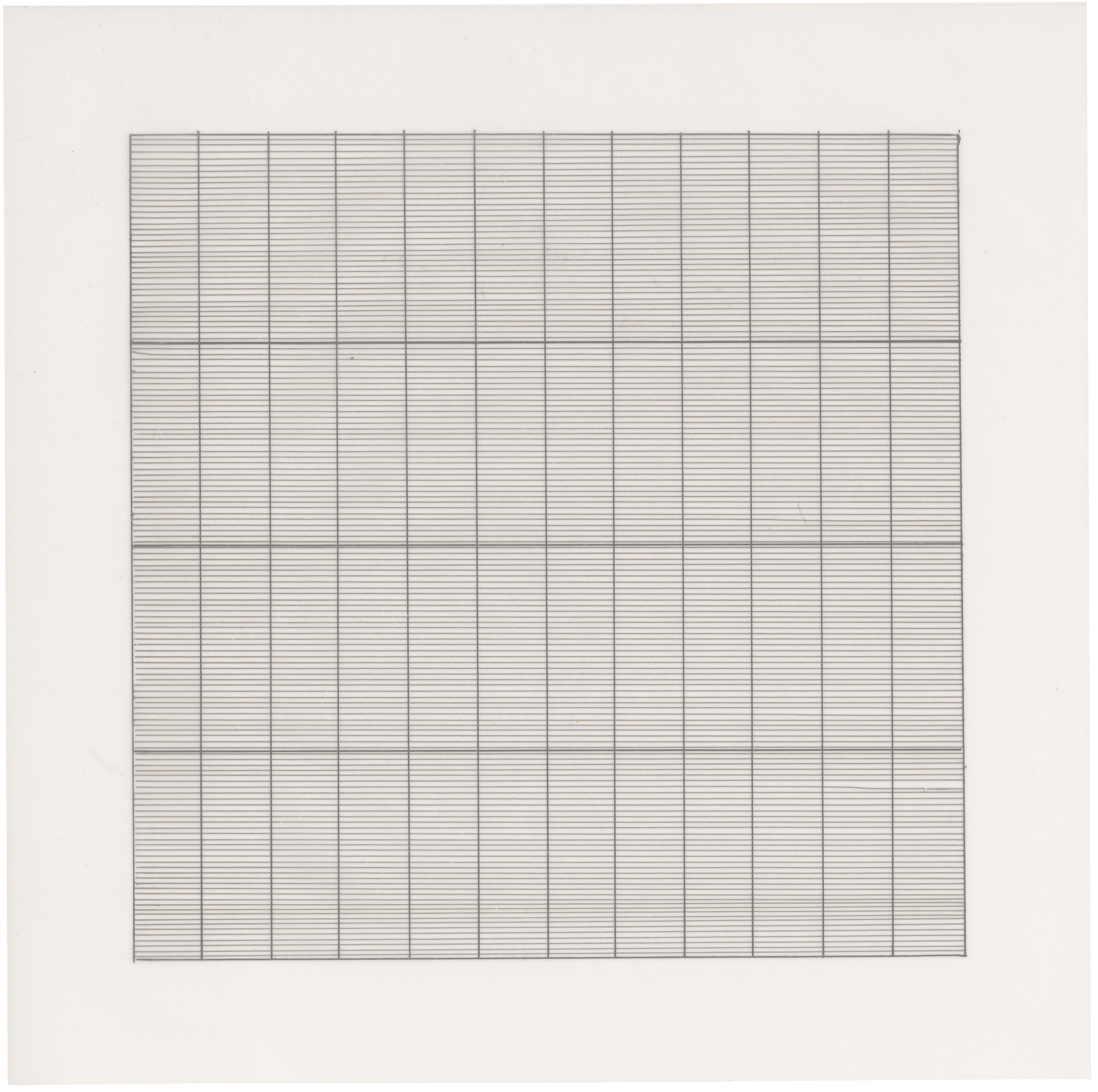 Westliche ästhetische Vorstellungen und östliche Philosophie überlagern sich im kontemplativ wirkenden Schaffen der Künstlerin; Malen war für sie stets auch Bewusstseinsentwicklung. Rhythmik und Stille prägen die feinsinnigen Kompositionen. Die komplette Folge von Lithographien nach Werken von Agnes Martin, alle im von ihr bevorzugten quadratischen Format. Entstanden für die Vorzugsausgabe des Kataloges zur Retrospektive der Künstlerin im Stedelijk Museum, Amsterdam u.a., 1991. Erschienen in der Edition Nemela & Lenzen, Mönchengladbach und des Stedelijk Museum, Amsterdam. Gedruckt bei Nemela & Lenzen in Mönchengladbach. Prachtvolle Drucke mit dem vollen Rand.