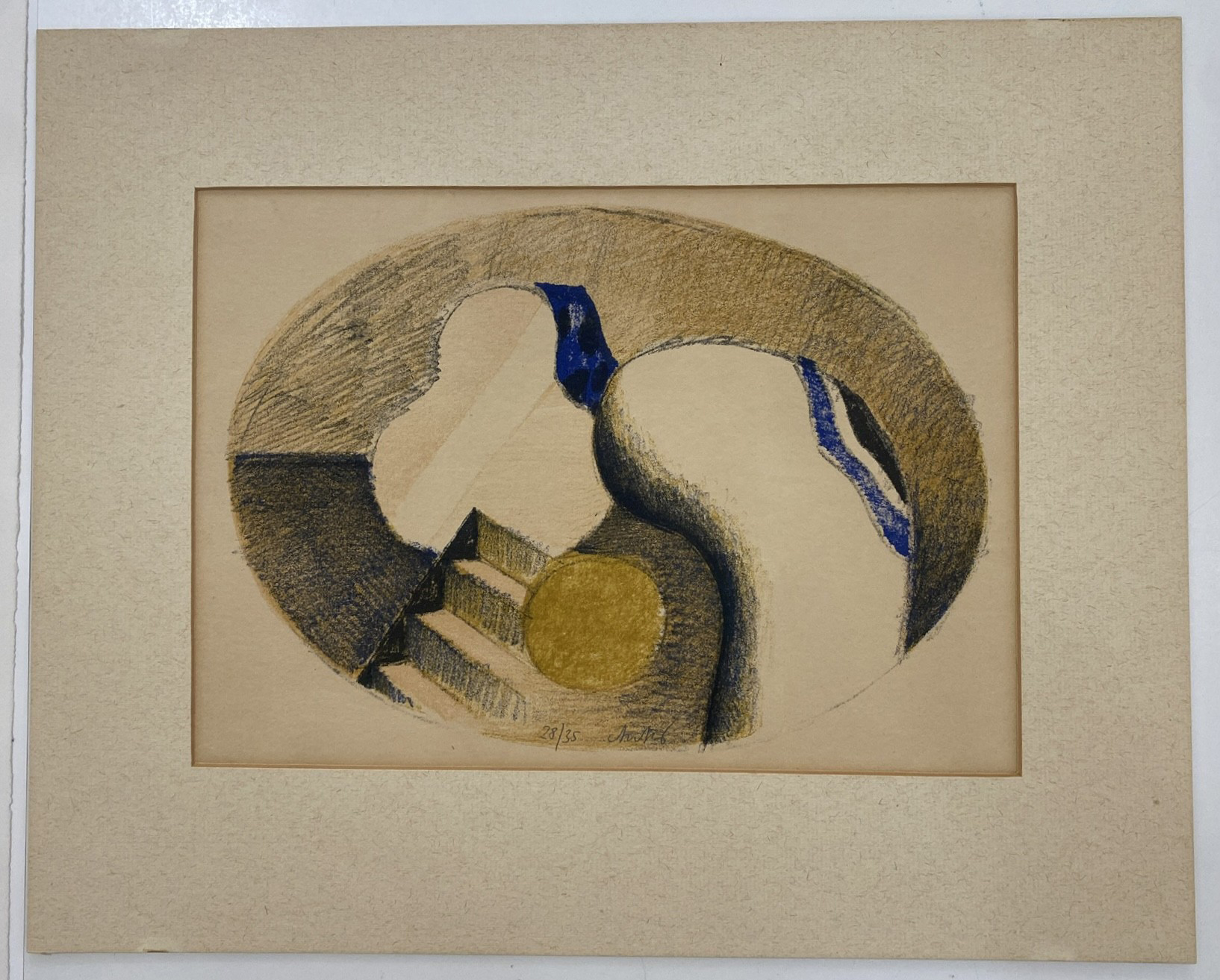 Vorhanden sind die Motive "Paar", 1965, "Kleines Stilleben", 1965, und "Stilleben mit Leiter, Kugel und Rohr", 1970.