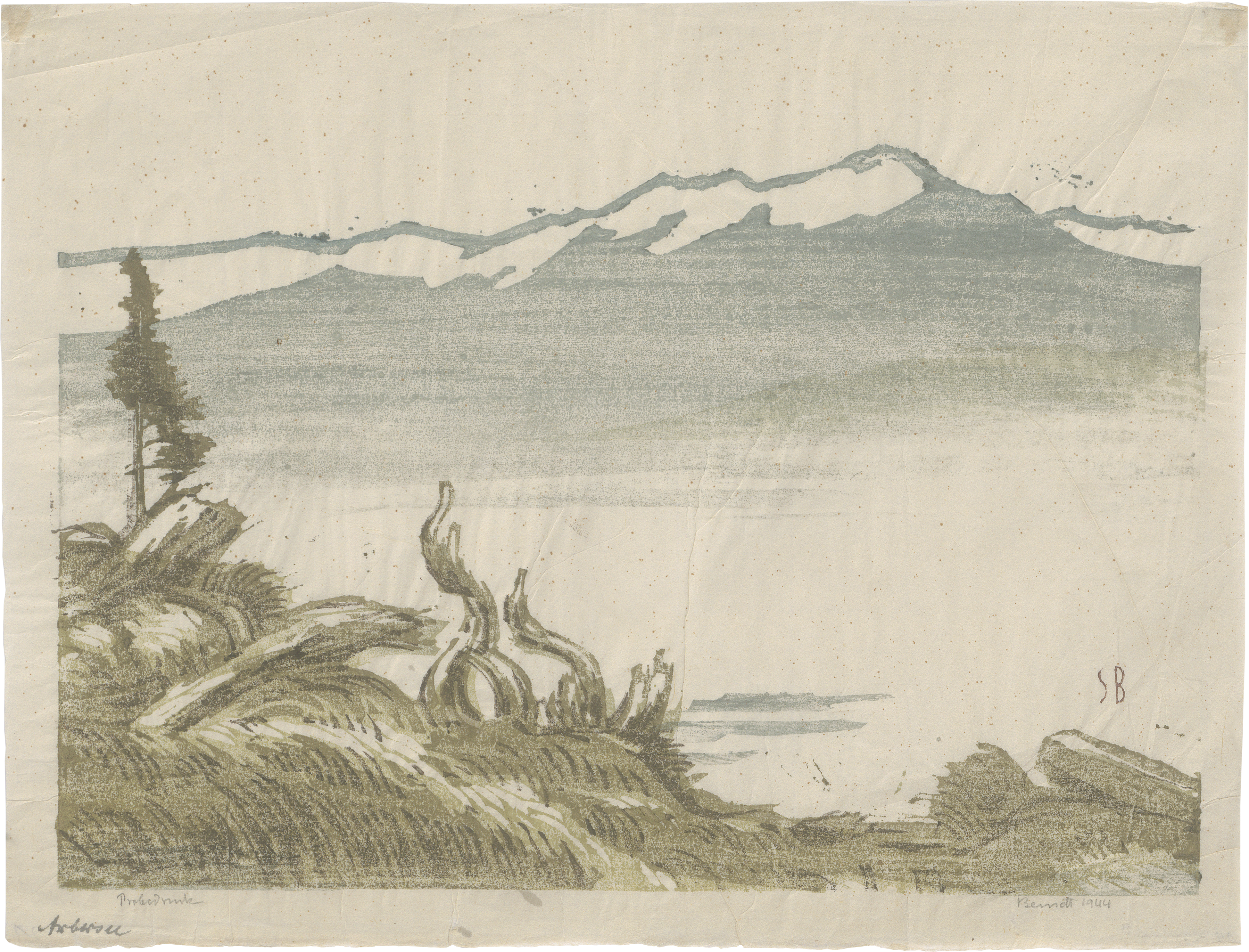 Farbholzschnitt auf hauchzartem Japanbütten. 1944.