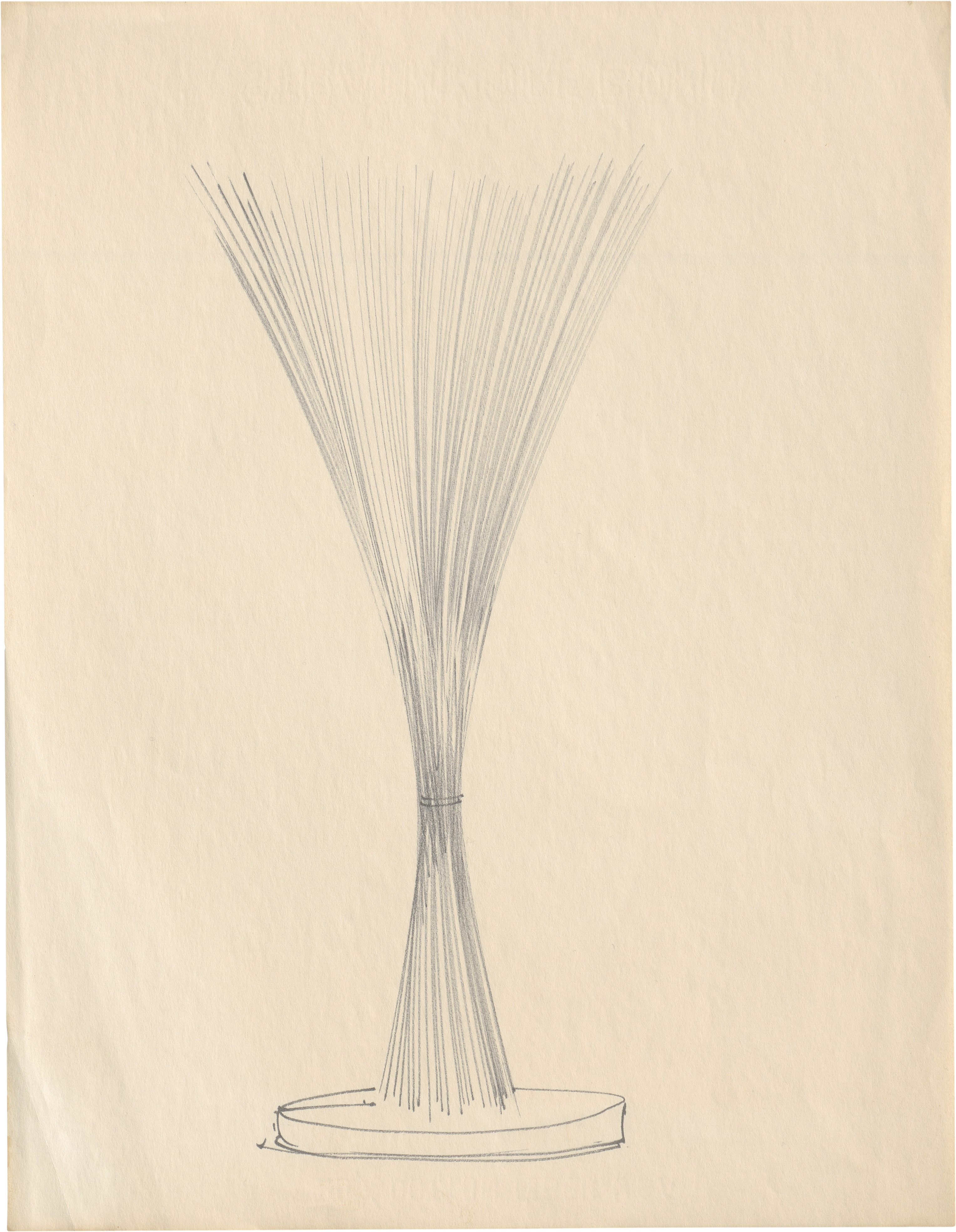 Entwurfszeichnung für eine Drahtskulptur auf runder, flacher Basis. Mit Echtheitszertifikat des Nachlasses Harry Bertoia von Celia Bertoia, Utah, 01.06.2022 (in Kopie).