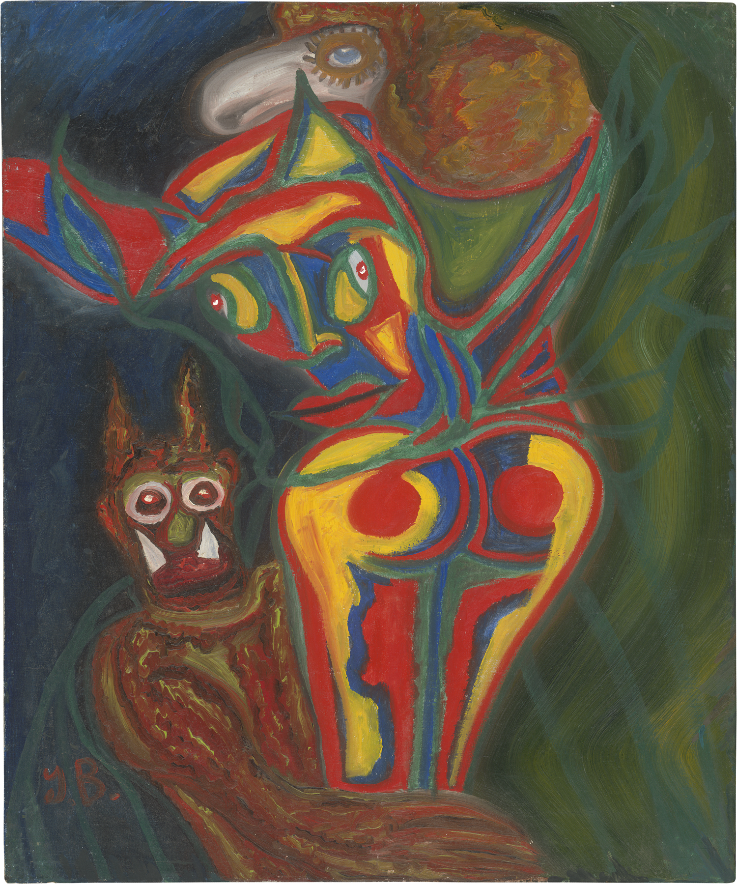 Unten links mit Pinsel in Rot monogrammiert "J.B.", verso signiert "JACK BILBO", datiert sowie betitelt und bezeichnet "BERLIN".
