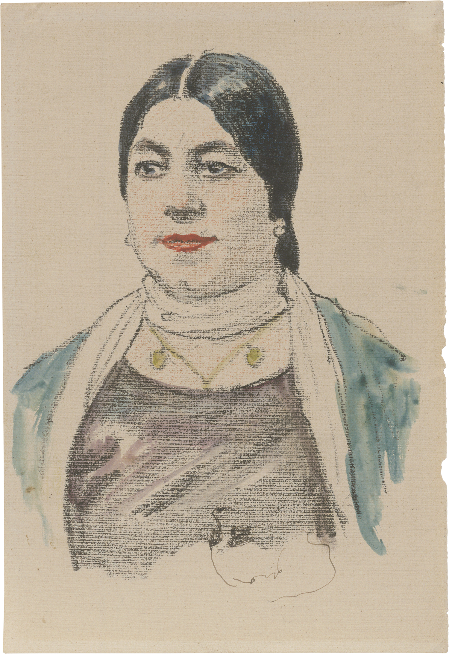 Schwarze und farbige Kreiden und Aquarell auf Velin. Um 1925.
