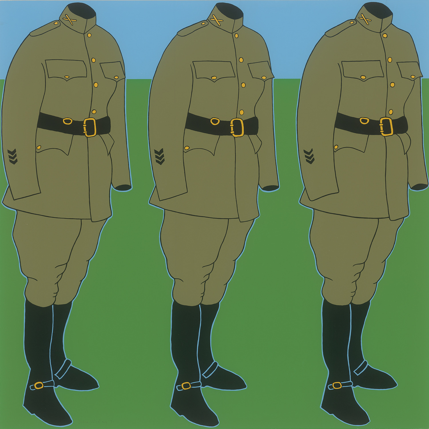 Aus der acht Siebdrucke umfassenden Mappe "Panoply: 8 Silkscreen Prints, Inspired by the Splendours of The Great War". Gedruckt von Hans-Peter Haas, Stuttgart, der aufgrund der hohen Qualität seiner Drucke insbesondere für amerikanische Vertreter der Pop Art tätig war. Herausgegeben von Abrams Original Editions, New York, in einer Gesamtauflage von 125 Exemplaren. Prachtvoller, farbintensiver Druck der formatfüllenden Komposition.