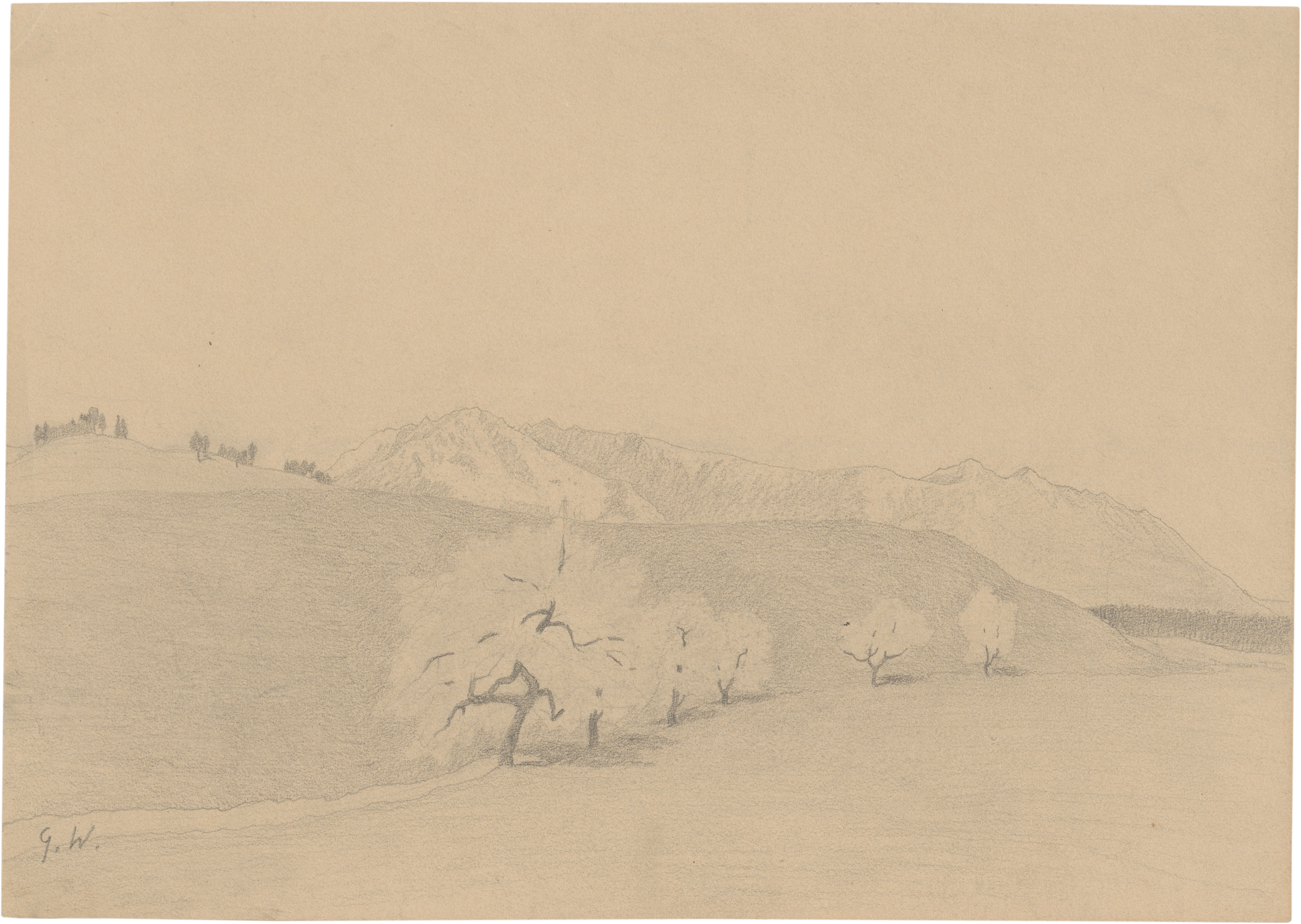 Unten links mit Bleistift monogrammiert "G.W.".