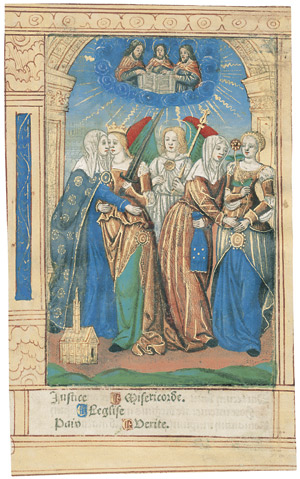 4 Miniaturen aus einem gedruckten Stundenbuch