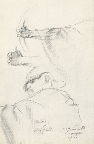 (1858 Tapiau - 1925 Zandvoort)Studien eines Arms mit Bogen und eines Mannes im Profil mit Helm