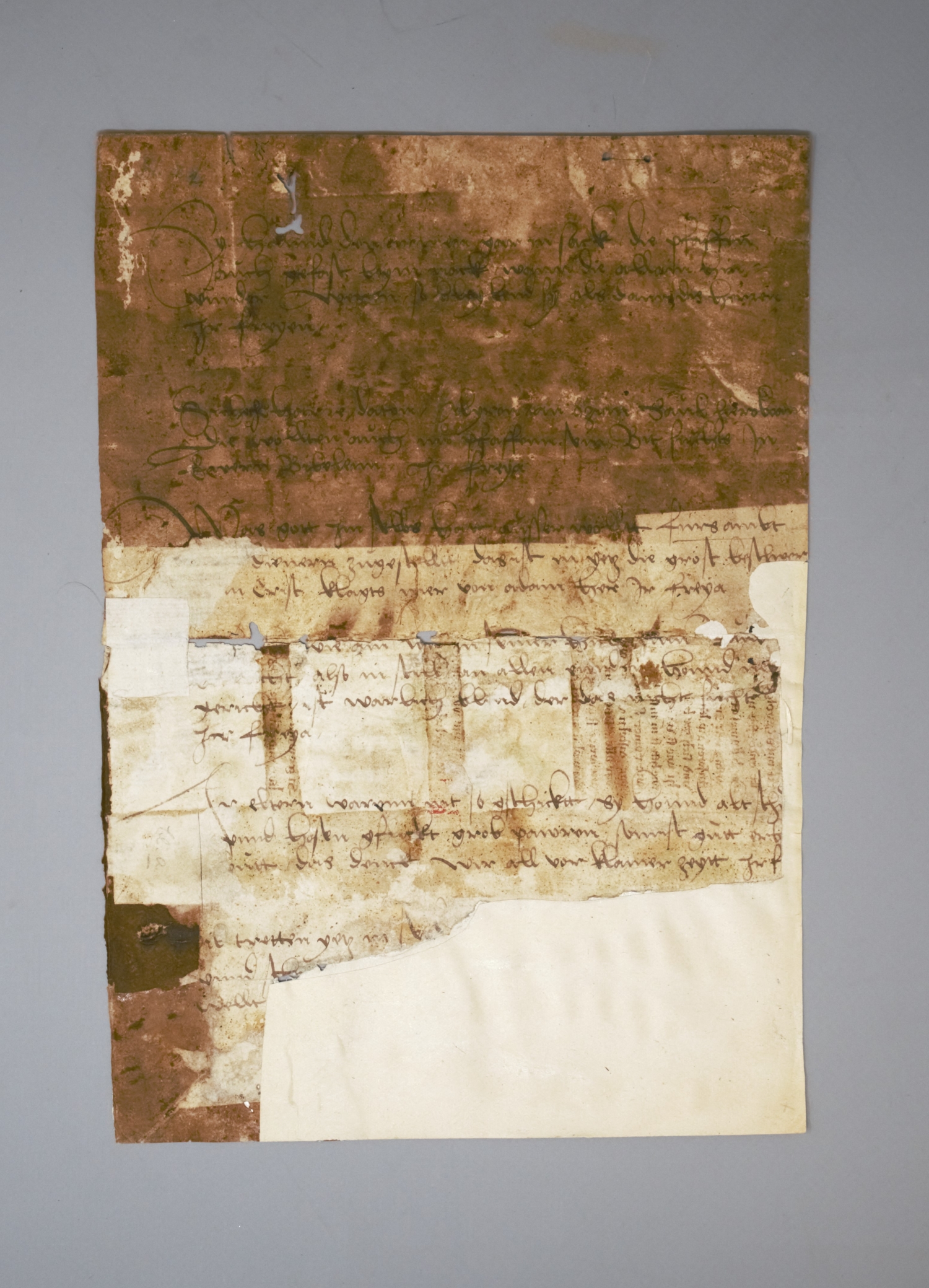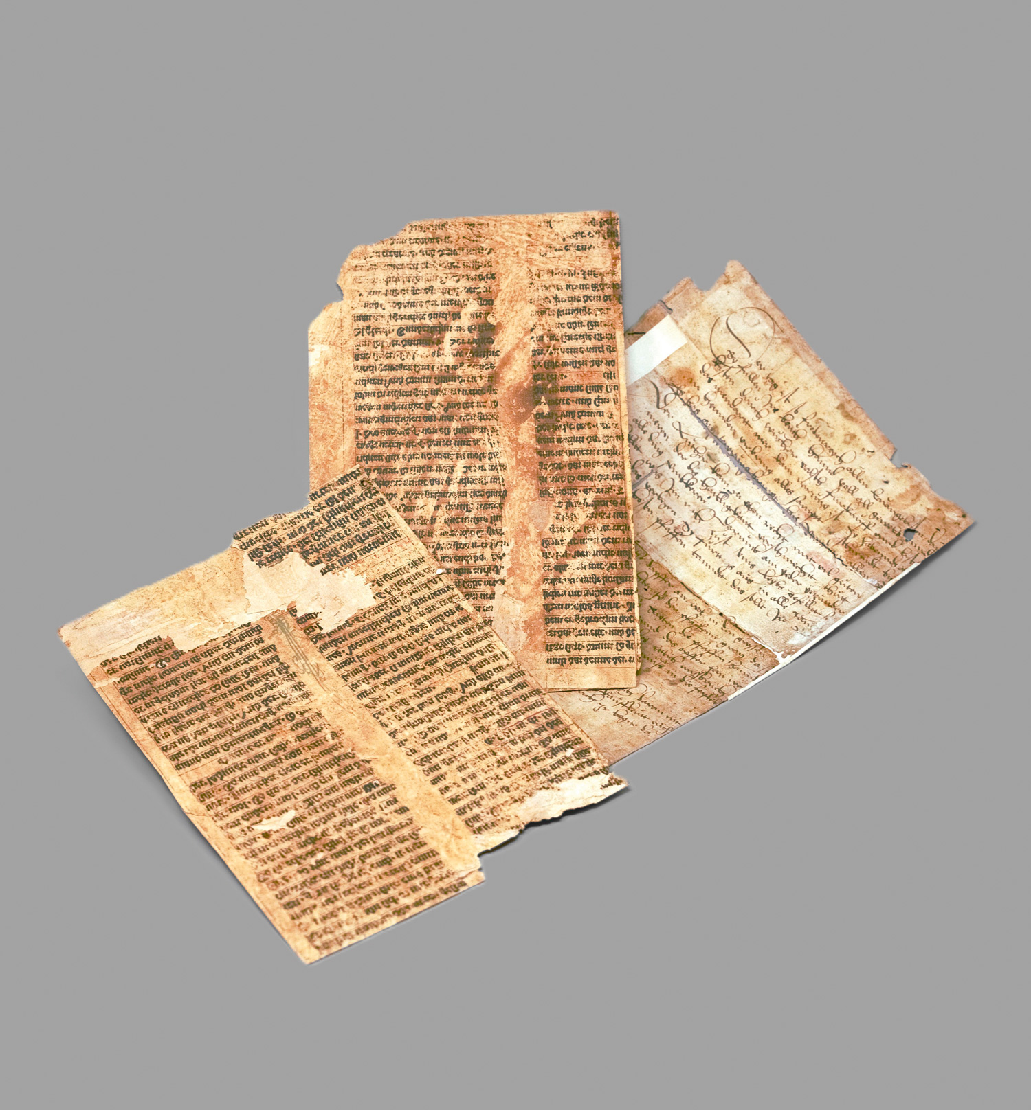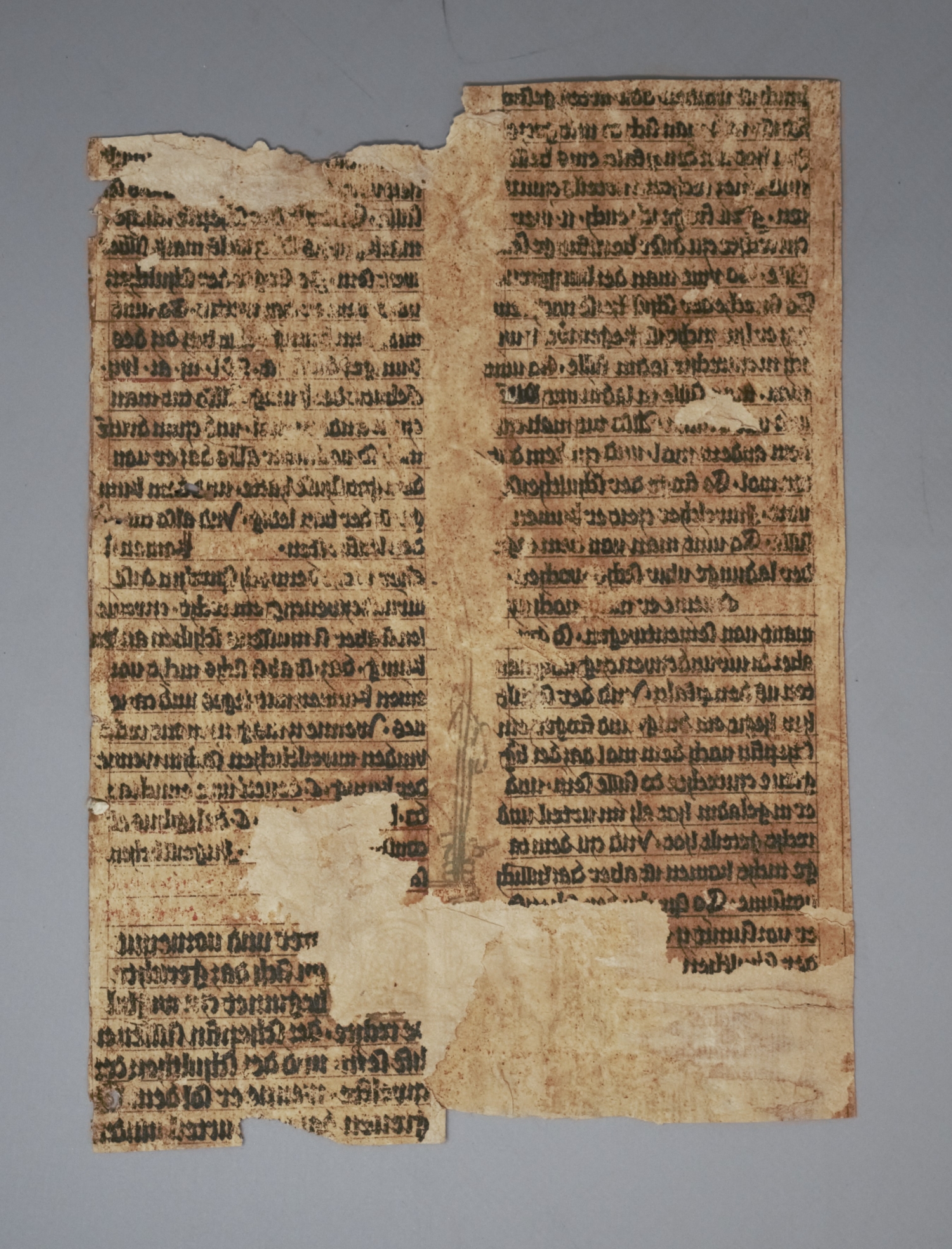 2 Fragmente. Gotische Textura in Braunschwarz und Rot. Spiegelabklatsch