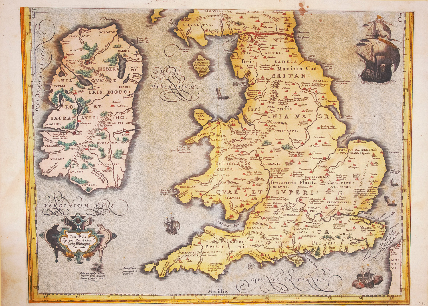 (1529-1589)Reliqua Britannicarum. Kolorierte Kupferkarte