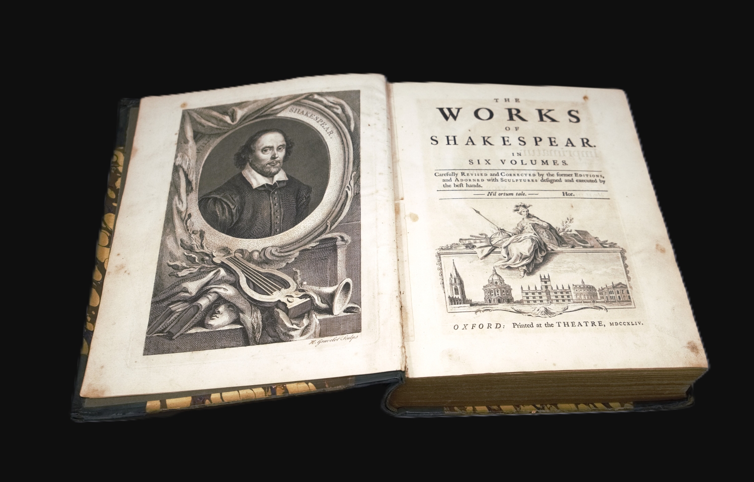 (1564-1616)The works in six volumes. Oxford, Theater, 1744. - Vollständige Reihe mit den Vorworten von A. Pope und N. Rowe