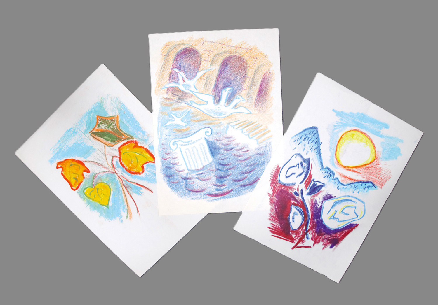 (1878-1971)3 Briefe mit ganzseitigen Ölkreide-Zeichnungen. 1962