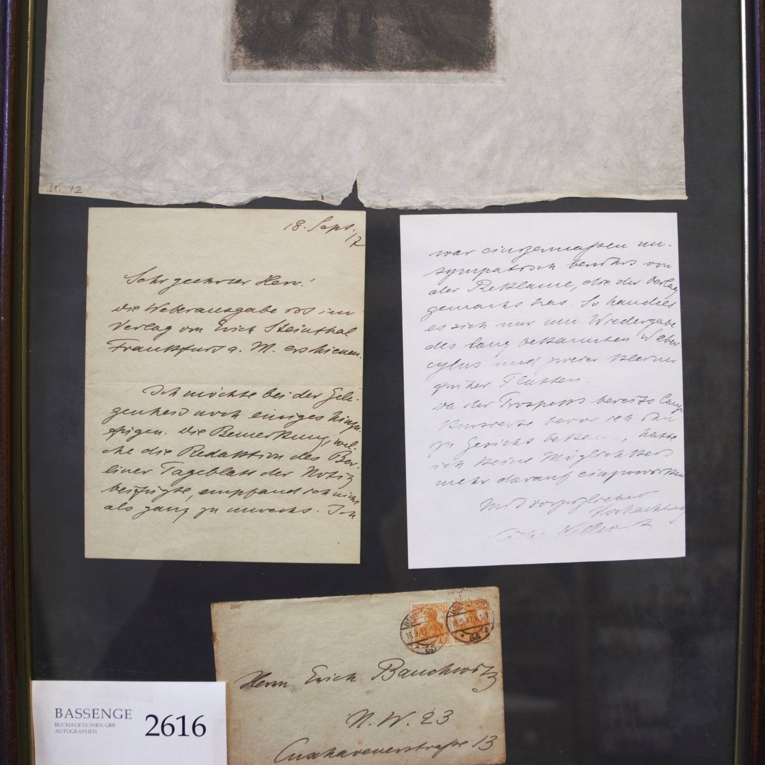 (1867-1945)Brief über den Weber-Zyklus. Dabei eine Radierung. 1917