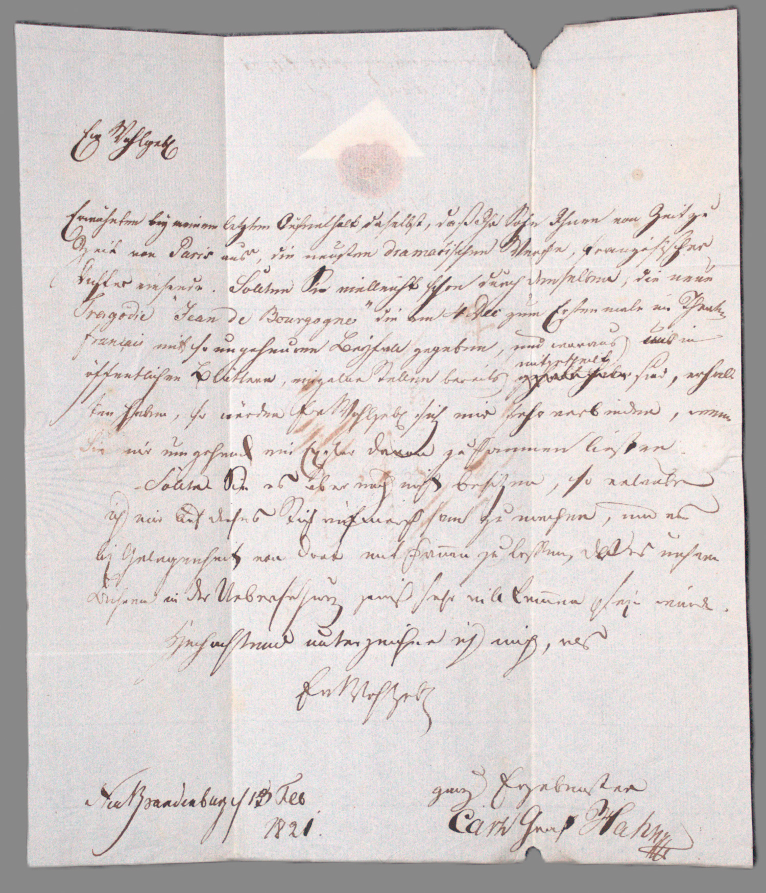 (1782-1857)Zur Hälfte eigenhändiger Brief. 1821