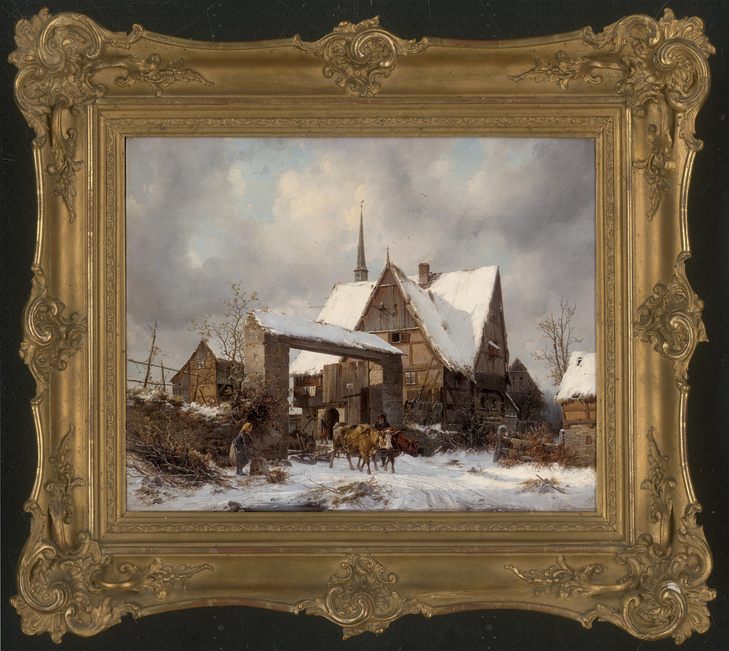 (1806 Dresden - 1874 Niederlößnitz)Winterlandschaft mit verschneitem Bauerngehöft