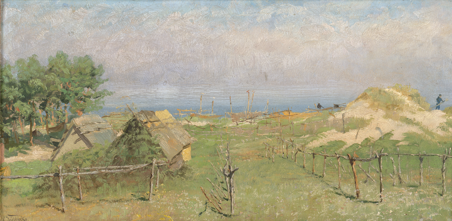 Lot 6151, Auction  126, Tübbecke, Paul Wilhelm, "Auf den Dünen bei Coserow auf Usedom": Fischerhütten an der Küste