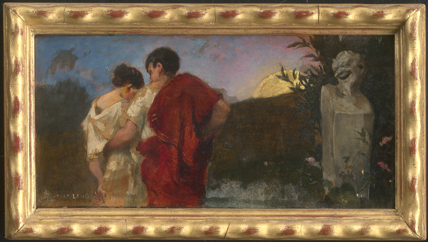 (1873-1936, Wien)Römische Nacht: Liebespaar bei Vollmond im Garten mit lachender Pansherme
