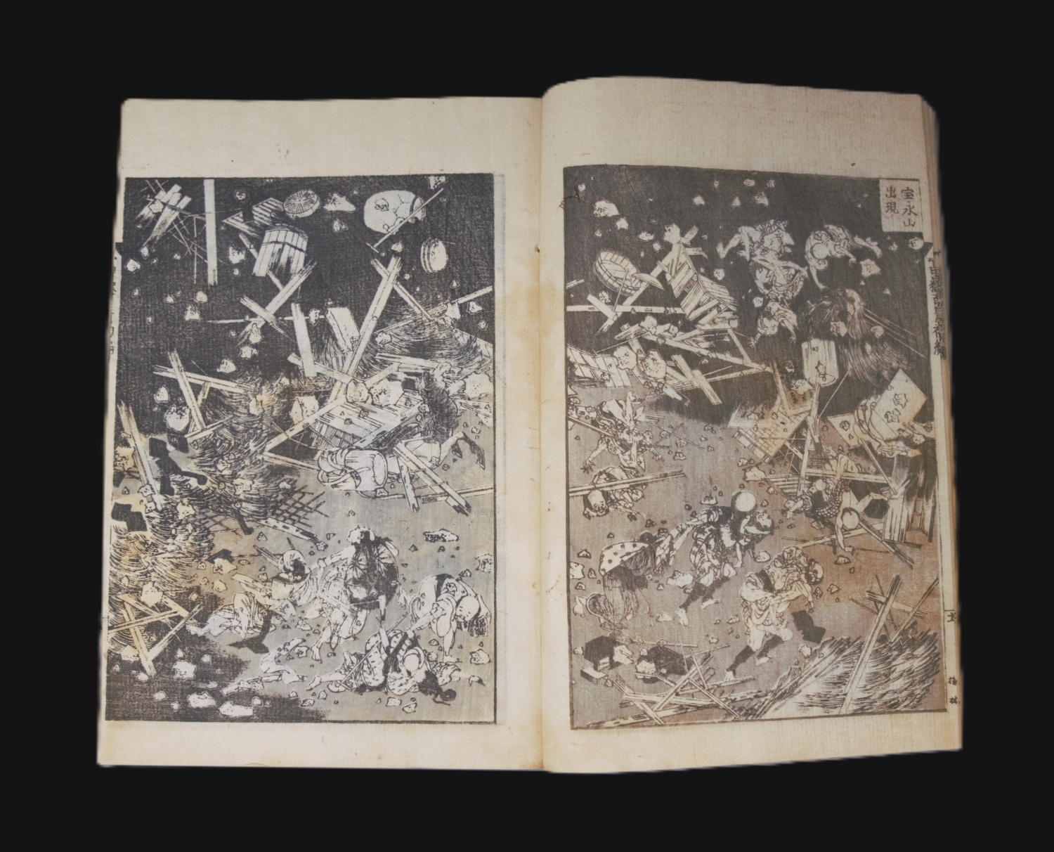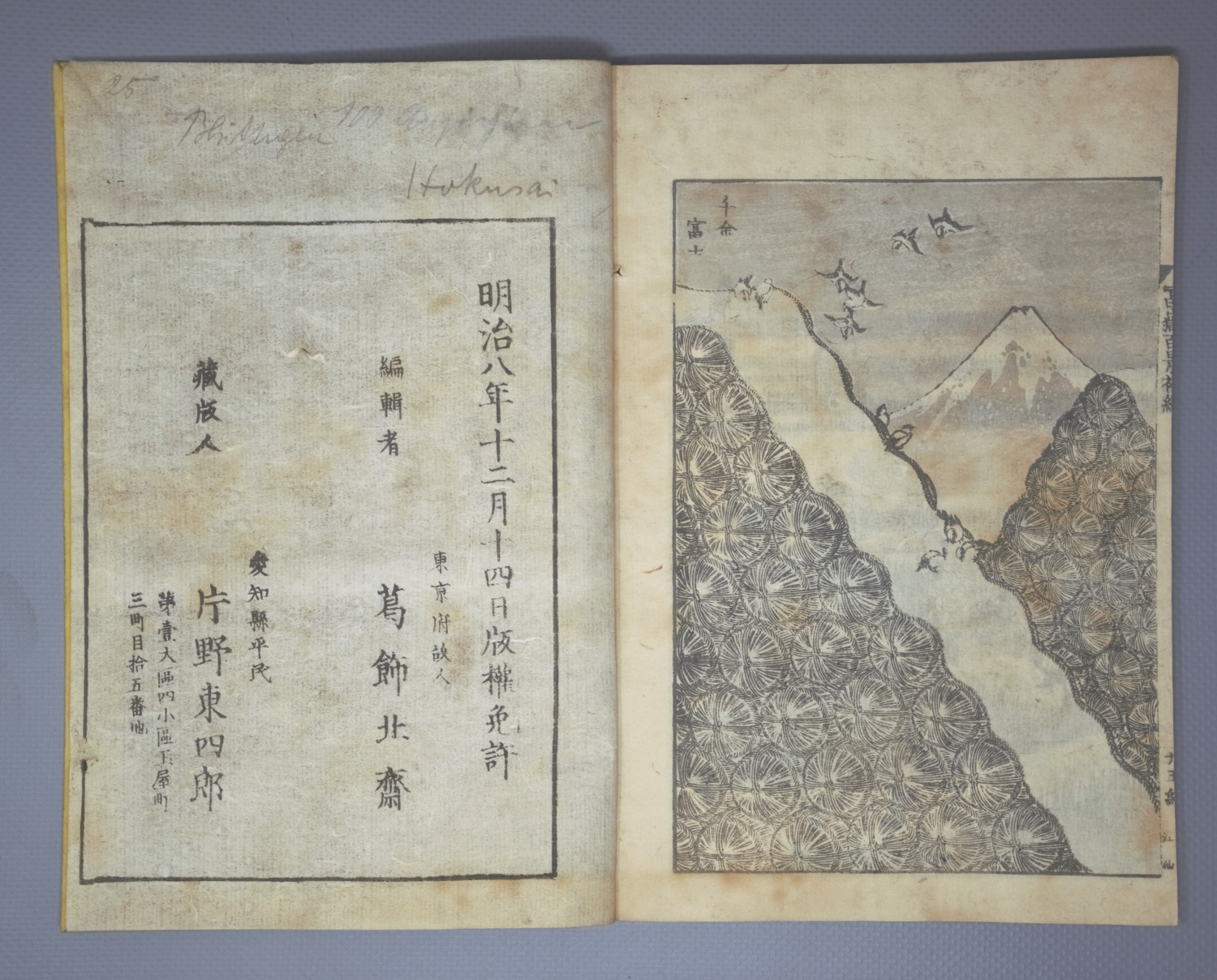 (1760-1849)Fugaku hyakkei (japonice: 100 Ansichten des Berges Fuji). 3 Blockbücher