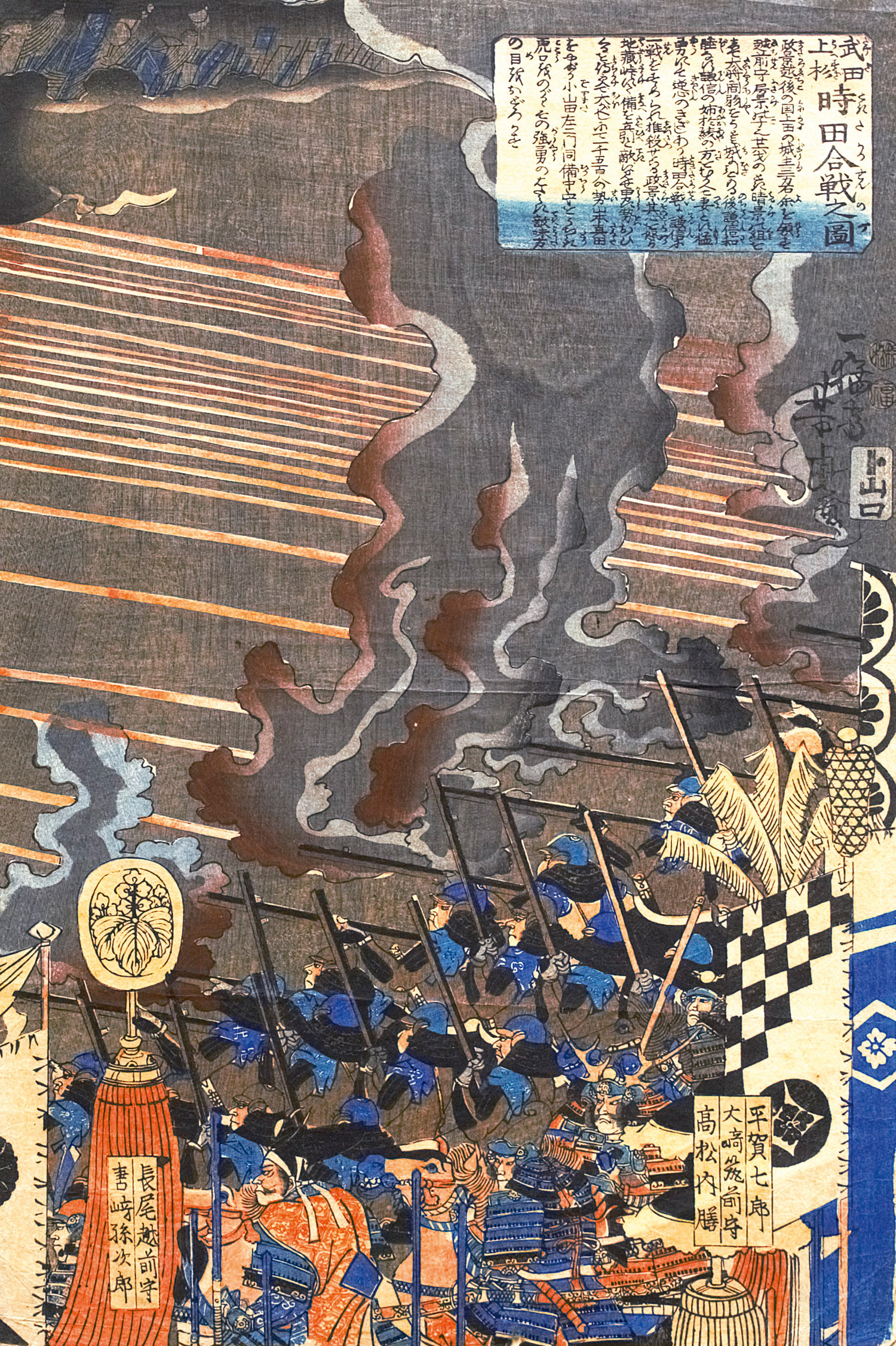 4 Ukiyo-e Farbholzschnitte, meist von Utagawa Kuniyoshi. Edo (Tokio) Mitte 19. Jahrhundert